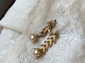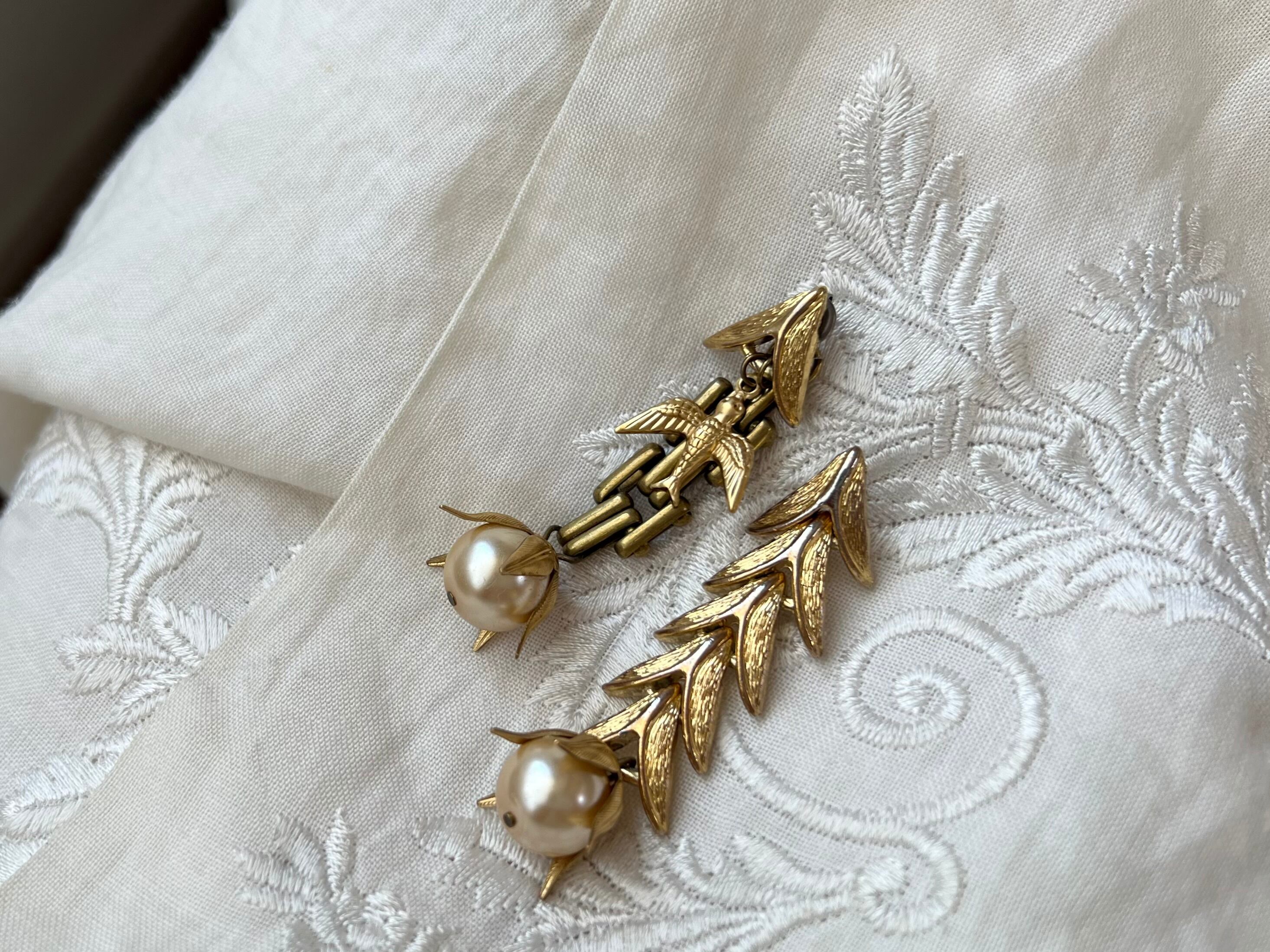 ヴィンテージパーツを使用してアシンメトリーなピアスを作りました。