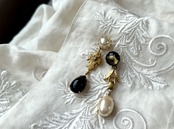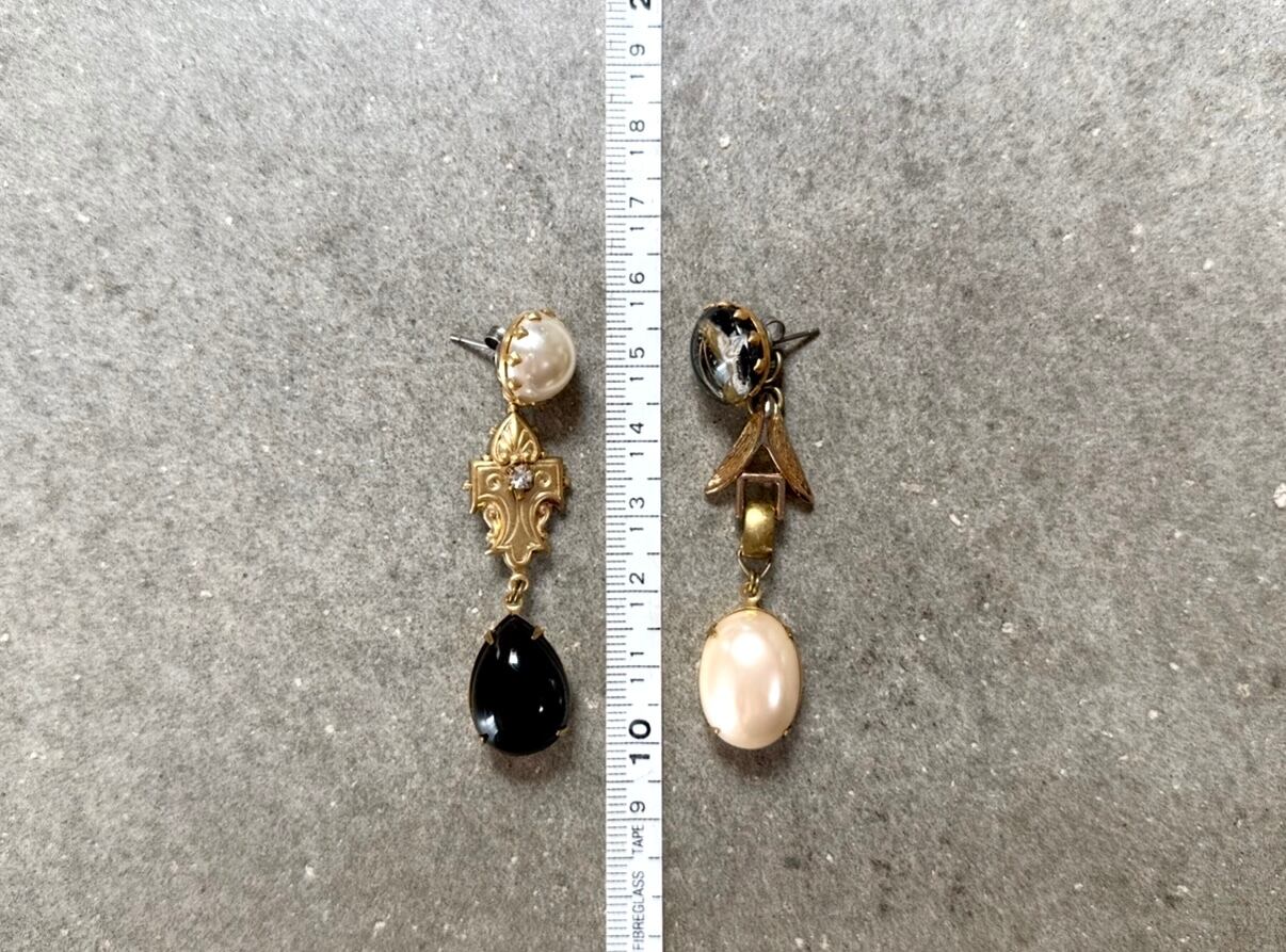 ヴィンテージパーツを使用してアシンメトリーなピアスを作りました。