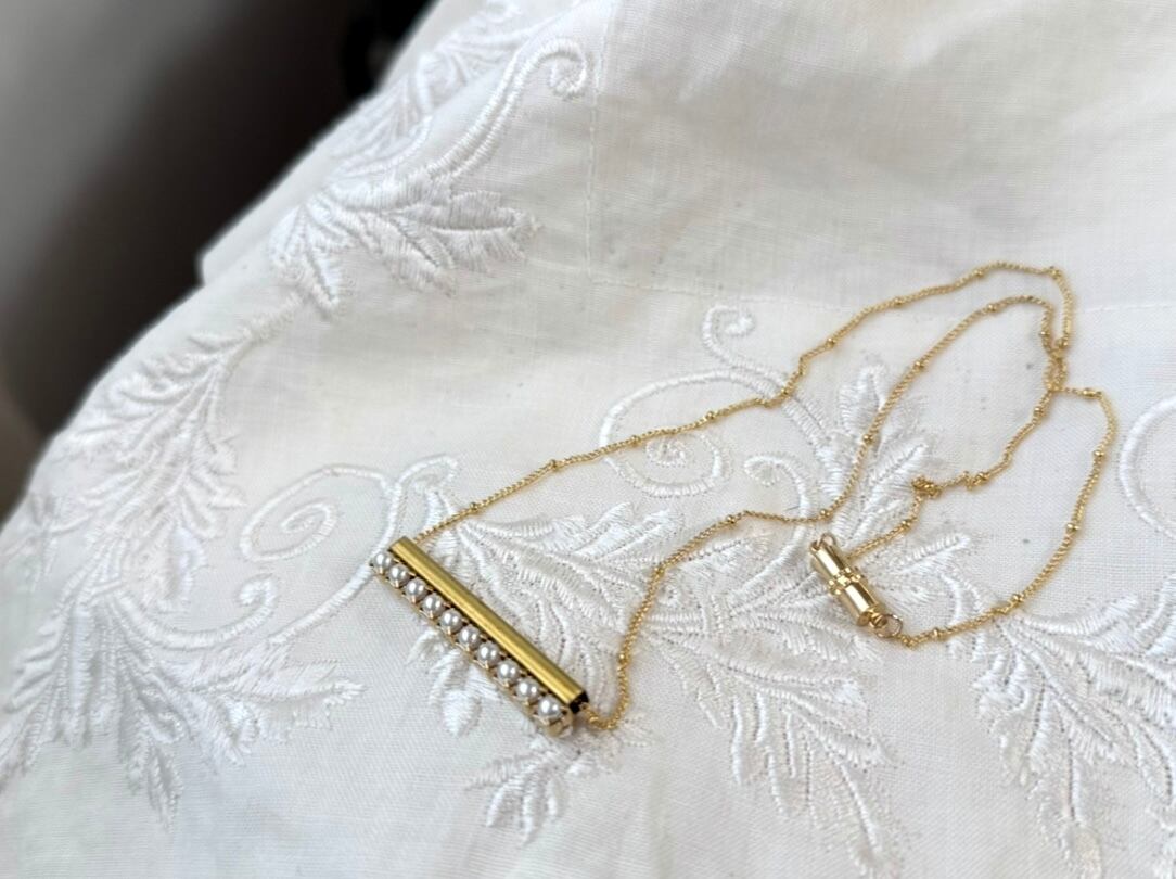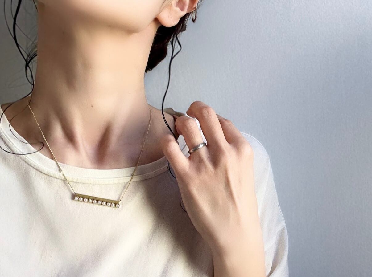 スッキリとした長めのバーが大人っぽく、パールにエレガント要素を加えました。