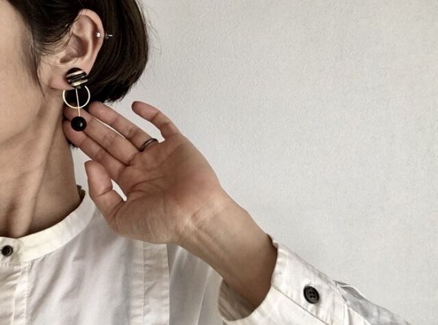 ブラック×ゴールドの組み合わせが、円の連なりをキリッと引き締めて、おしゃれで大人っぽい仕上がりになっています。