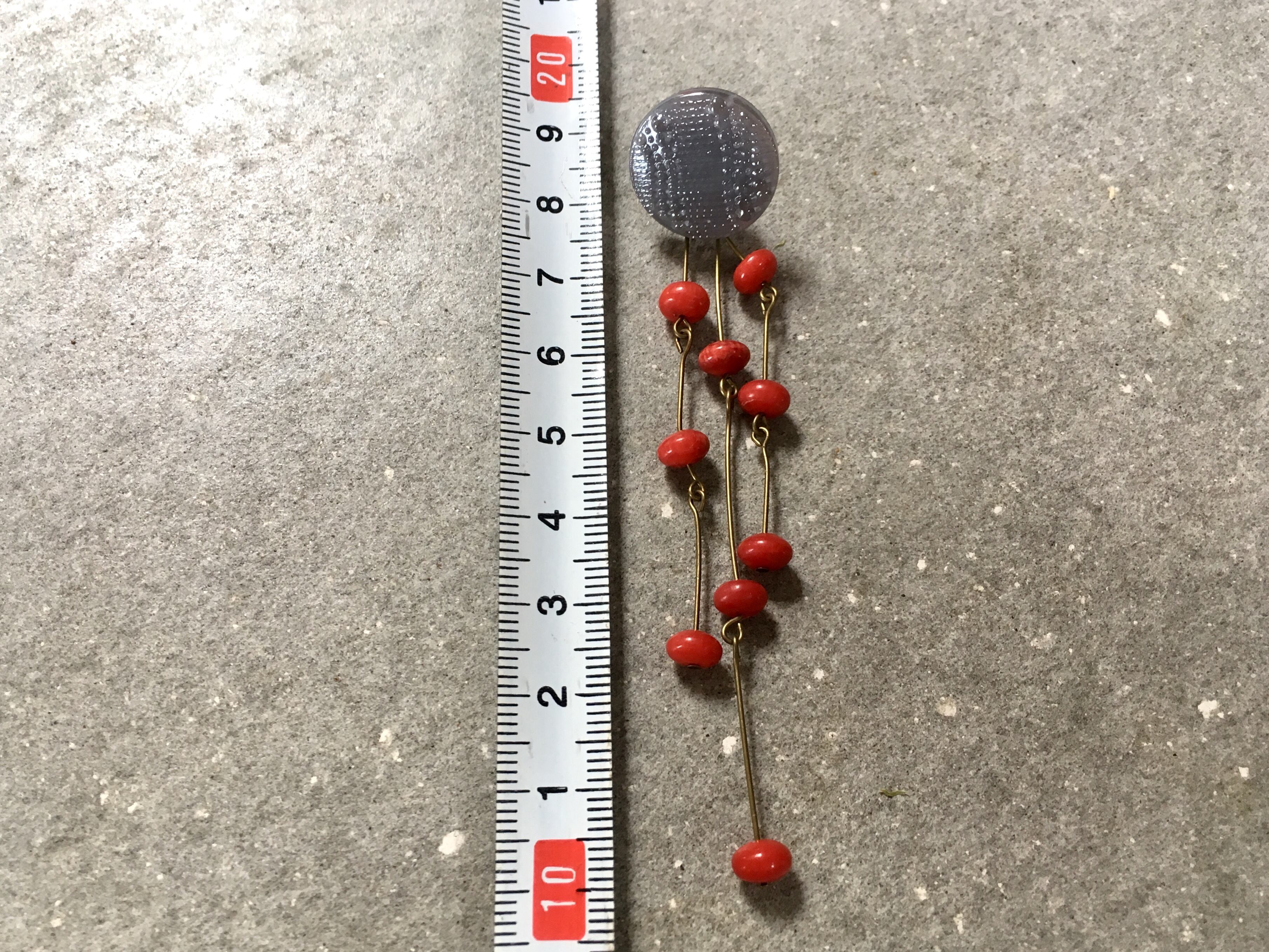 ヴィンテージチェコガラスボタンをカボションに、珊瑚のビーズを散りばめて、ヴィンテージピアスに仕上げました。