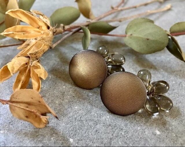 ドイツのヴィンテージボタンにチェコガラスを散らして、ヴィンテージピアスに仕上げました。