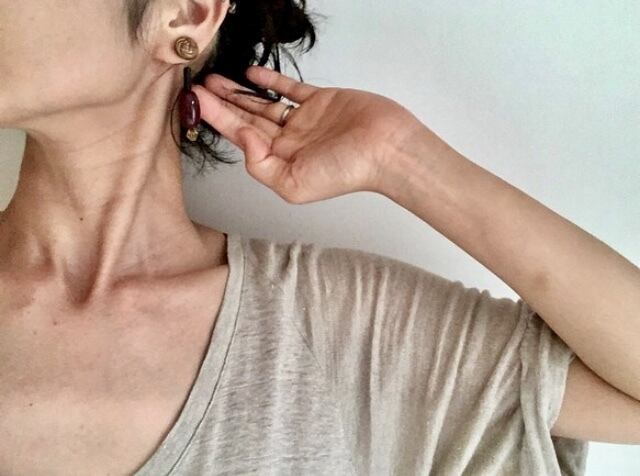 ヴィンテージボタンとヴィンテージビーズを合わせて、ヴィンテージピアスに仕上げました。