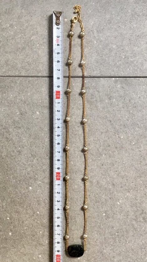 それぞれ静かな光を放つパールビーズと石が、好相性なネックレスです。