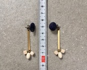 フランスのヴィンテージボタンをカボションに、ヴィンテージの真鍮パーツやチェコガラスビーズ、ヴィンテージビーズを組み合わせてピアスを作りました。