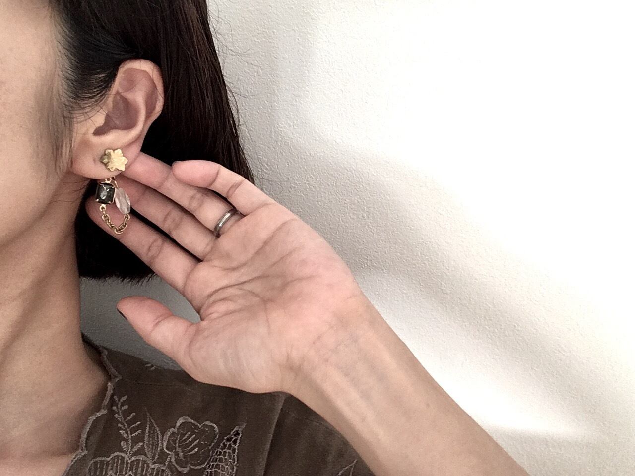 ヴィンテージパーツやヴィンテージビーズを散りばめて、ピアスを作りました。