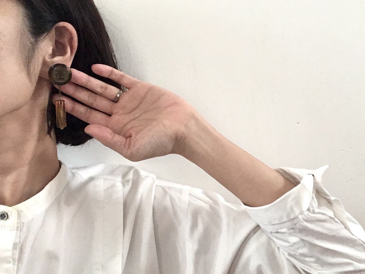 ヴィンテージボタンとヴィンテージビーズを繋げて、ピアスに仕上げました。