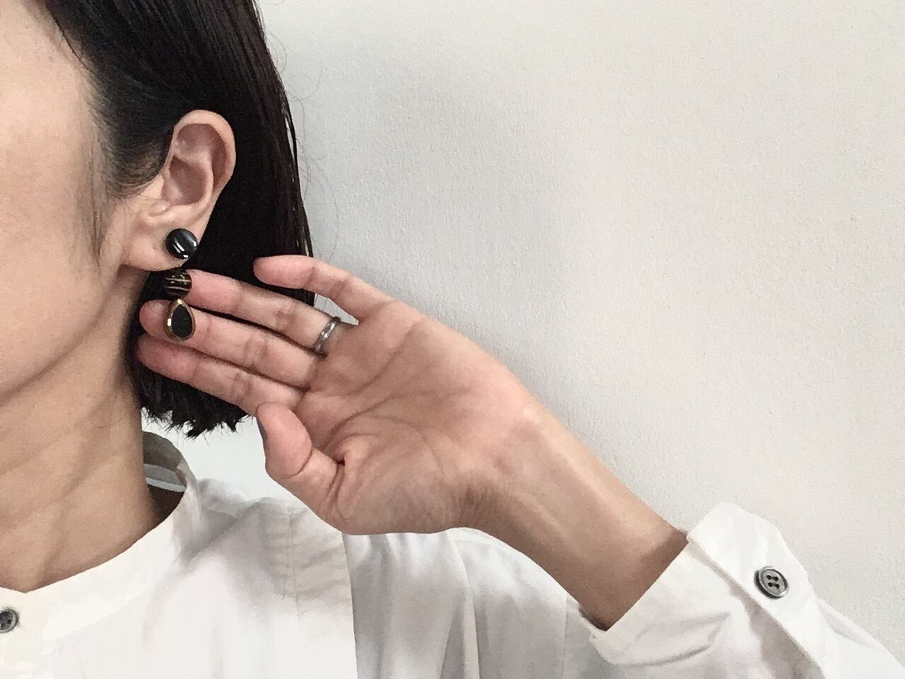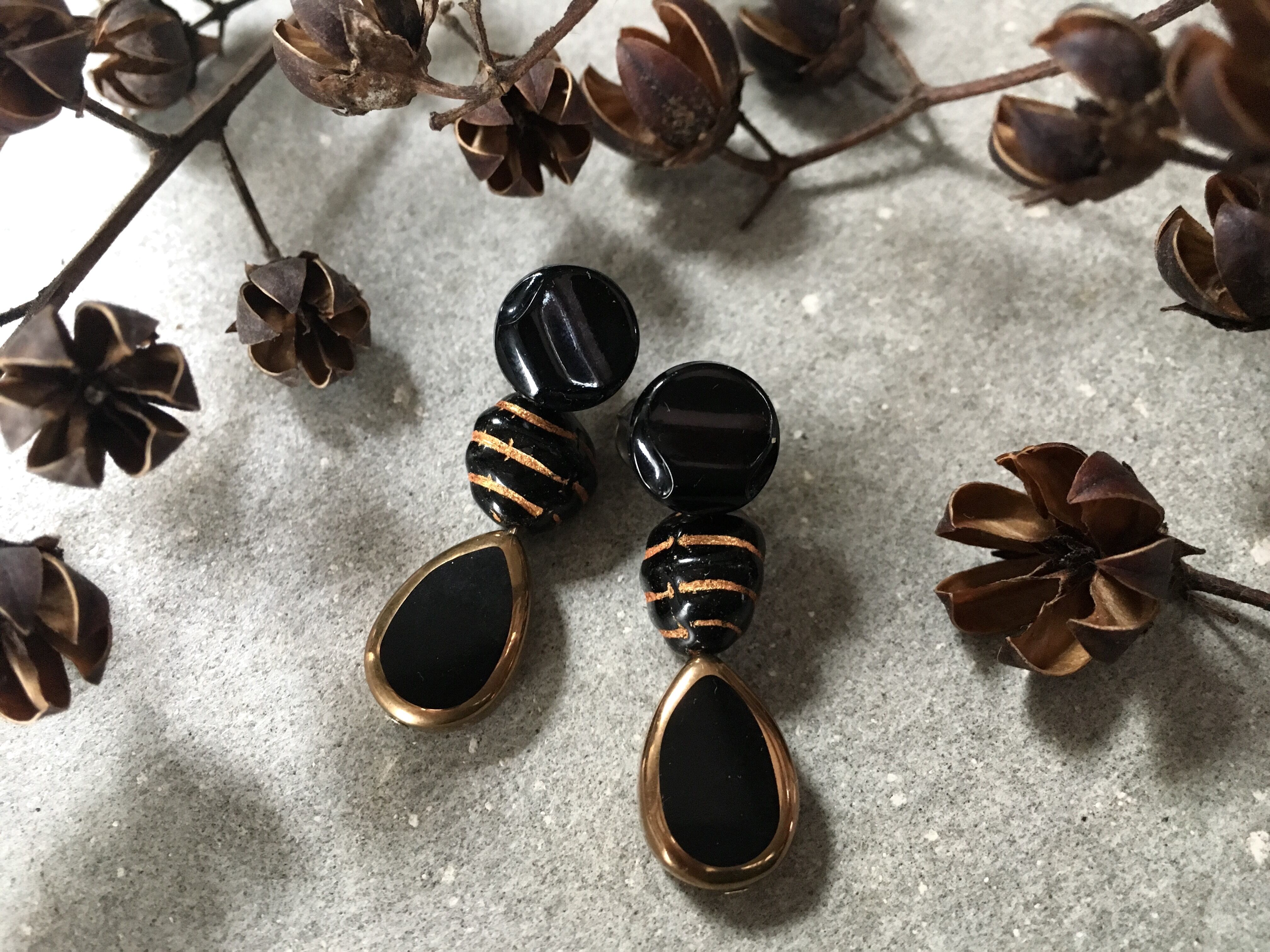 フランスのヴィンテージボタンにヴィンテージビーズを添えて、ピアスを作りました。