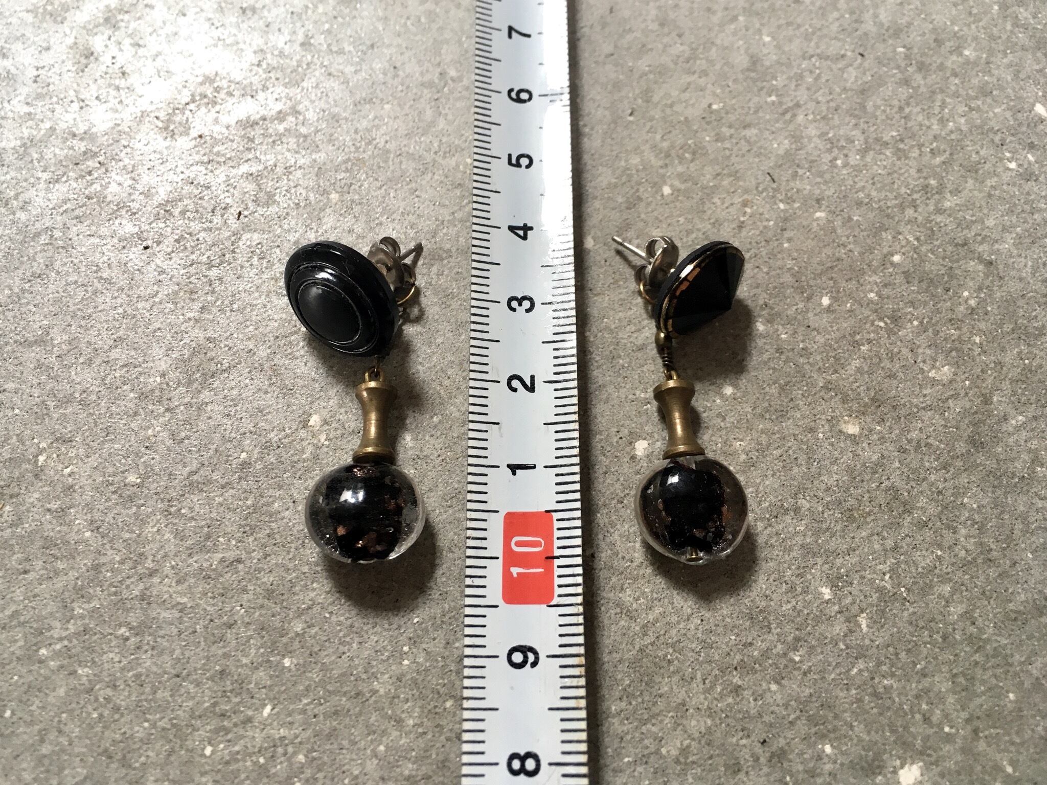 フランスのヴィンテージボタンに、ヴィンテージガラスビーズを真鍮で繋いで、ピアスを作りました。