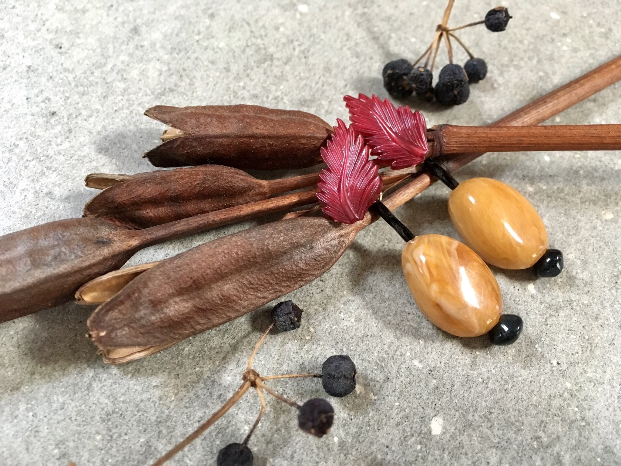フランスのヴィンテージカボションやビーズを使って、ピアスを作りました。