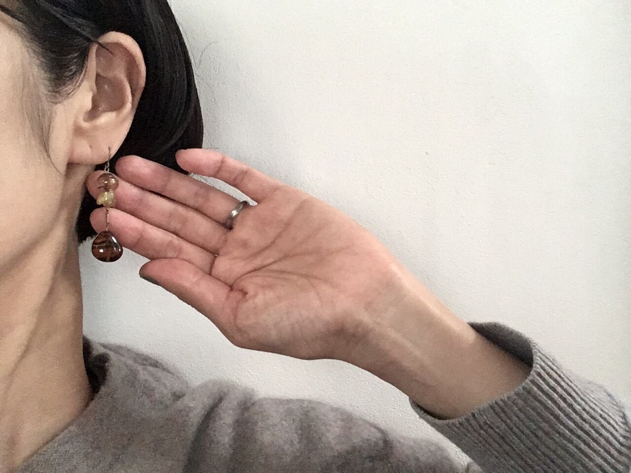 フランスのヴィンテージビーズを組み合わせて、アシンメトリーなピアスに仕上げました。