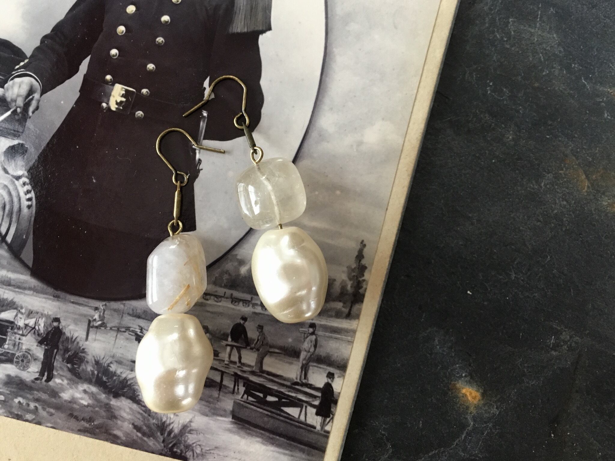 フランスのヴィンテージビーズと天然石を組み合わせて、ピアスに仕上げました。