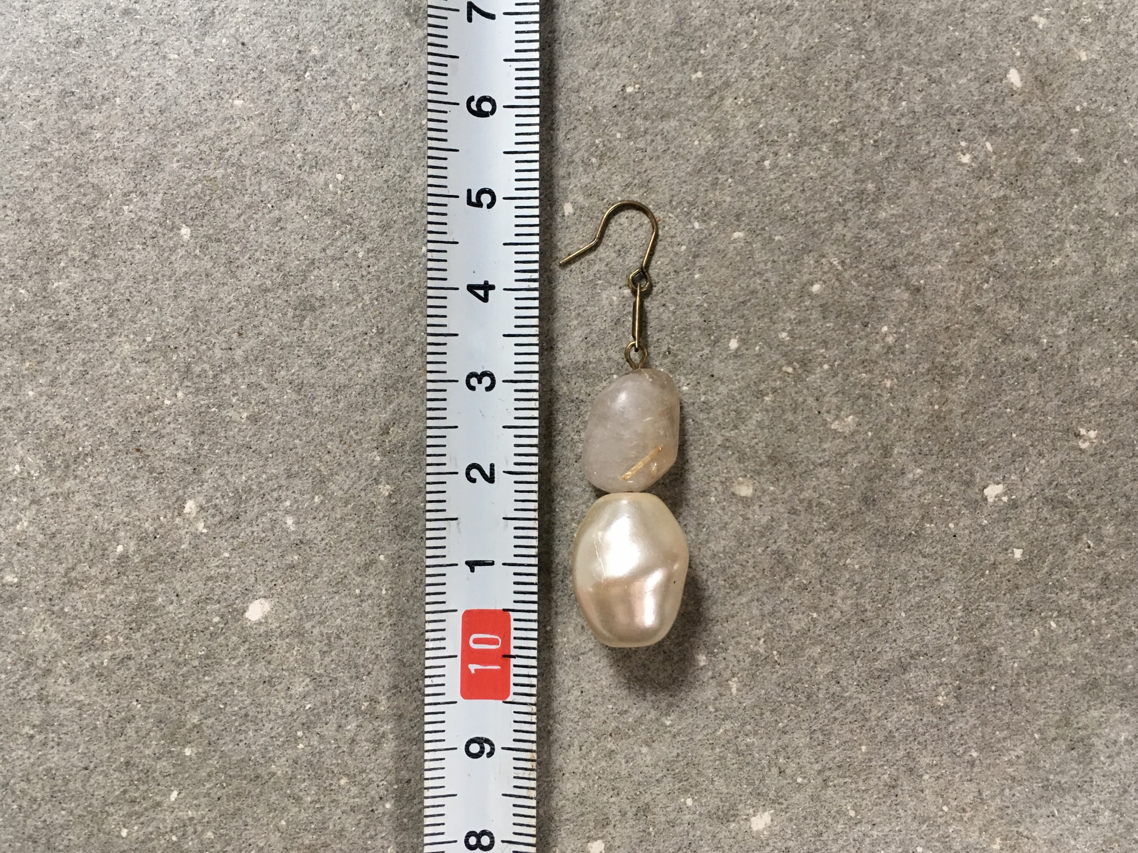 パールの光沢とガラスや天然石の質感が好相性の一品です。