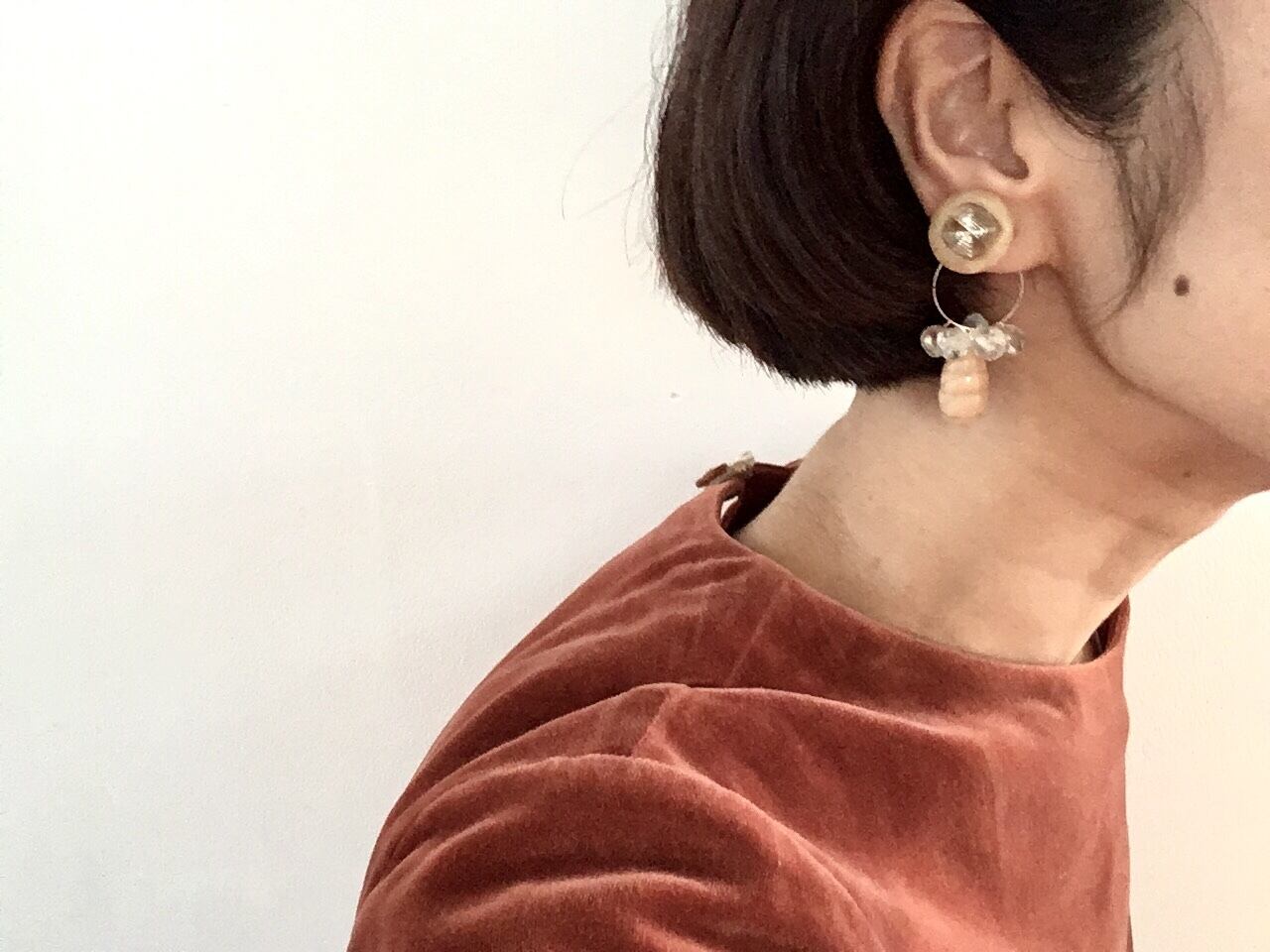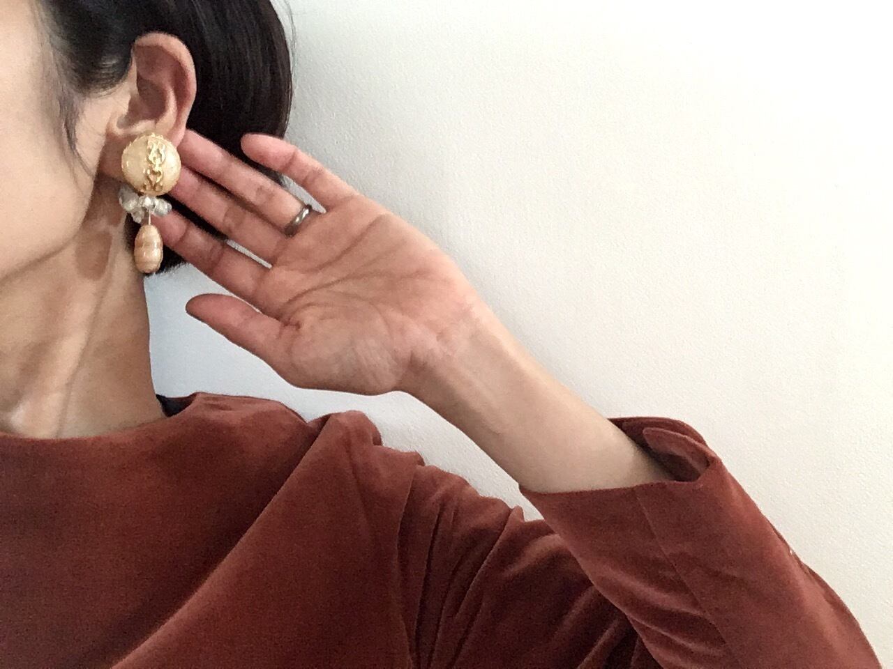 大ぶりで存在感がありながらも、柔らかなベージュの色味のお陰で、上品で控えめな雰囲気です。