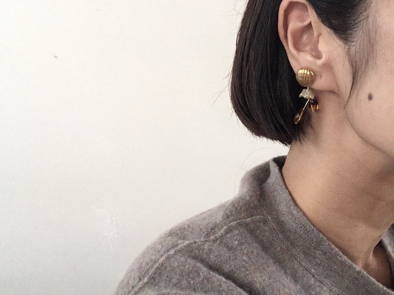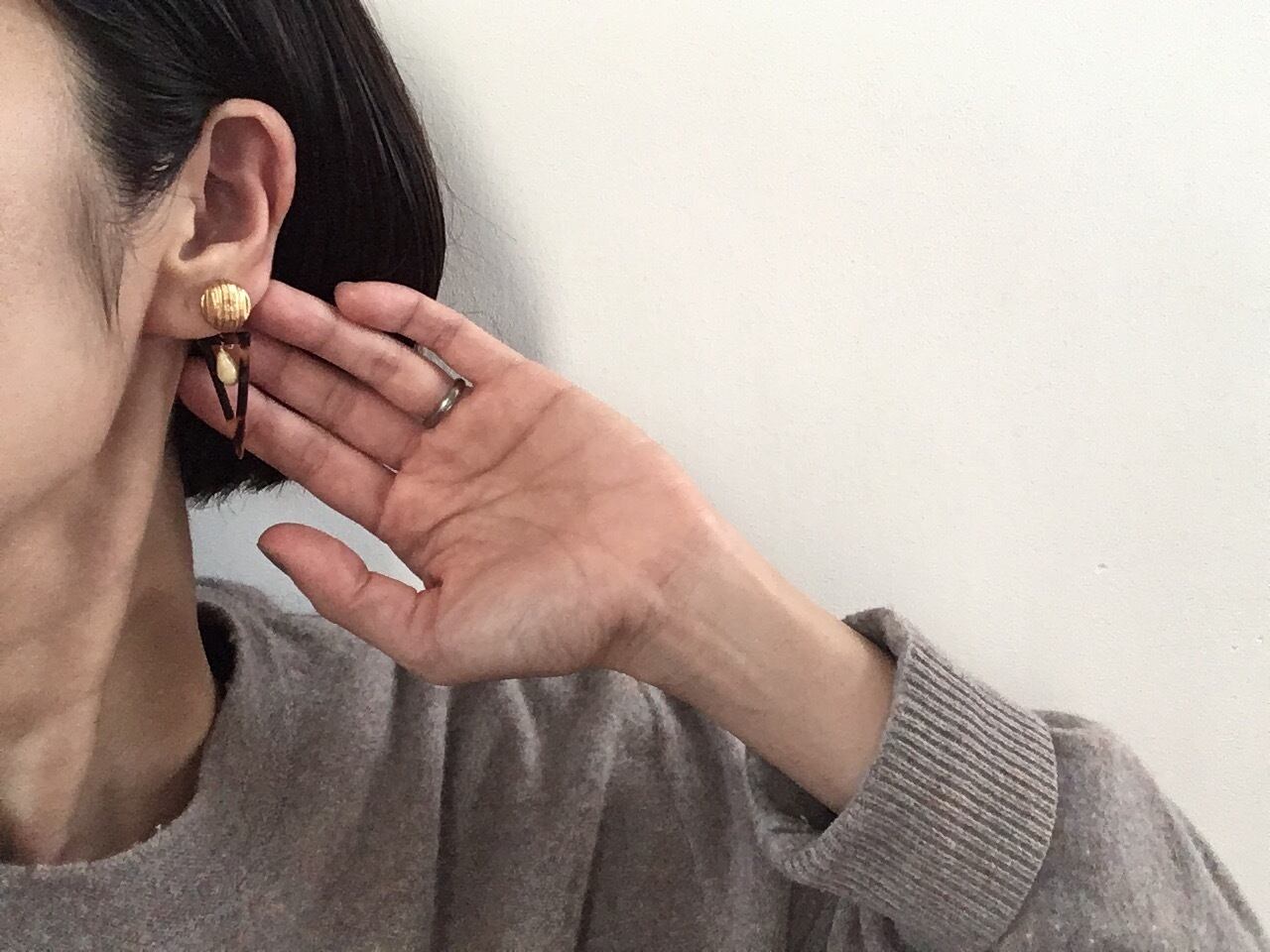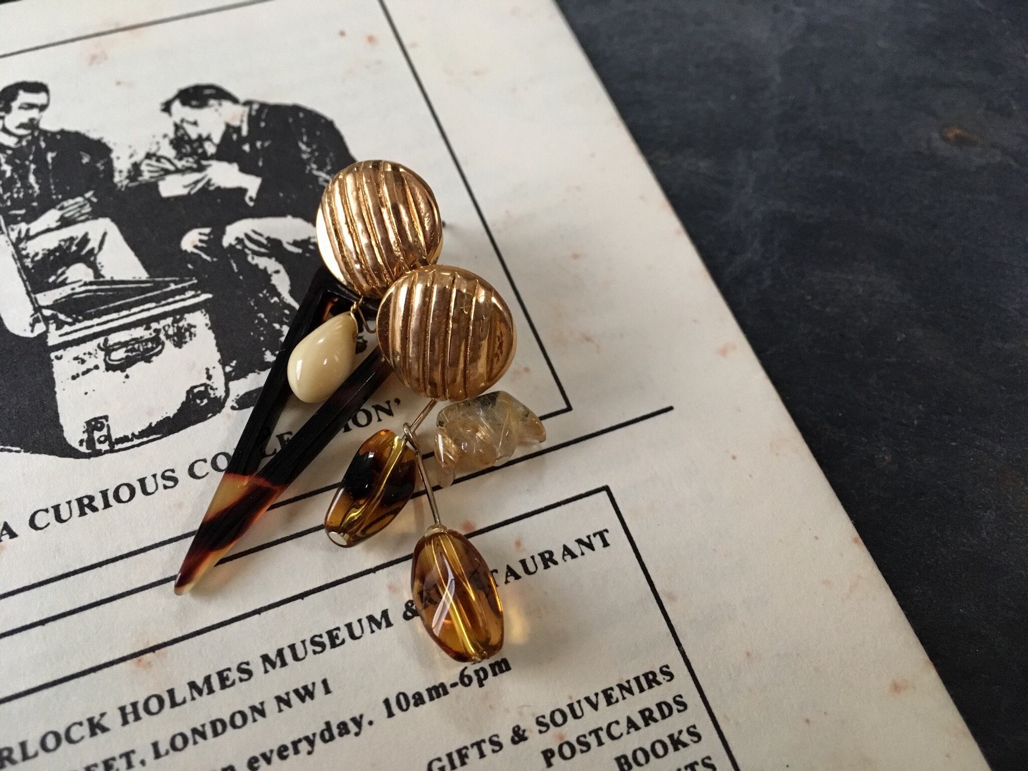 フランスのヴィンテージビーズに、 べっ甲パーツやヴィンテージビーズを添えて、アシンメトリーなピアスに仕上げました。