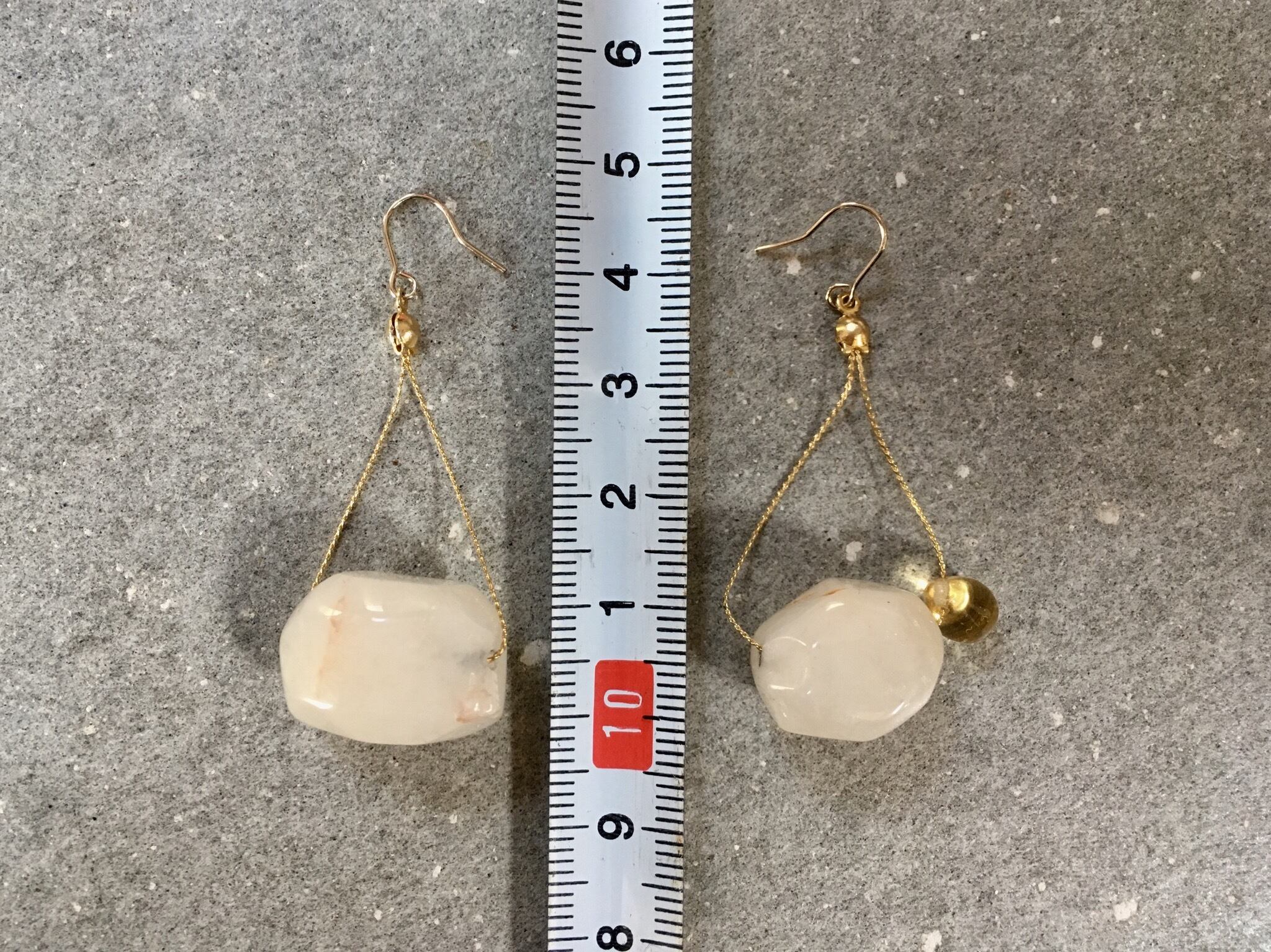 天然石を、シンプルなアシンメトリーピアスに仕上げました。