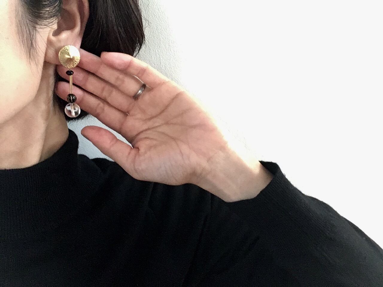 間にブラックのチェコガラスやオニキスを挟むことで、凜とした潔い雰囲気に仕上げました。