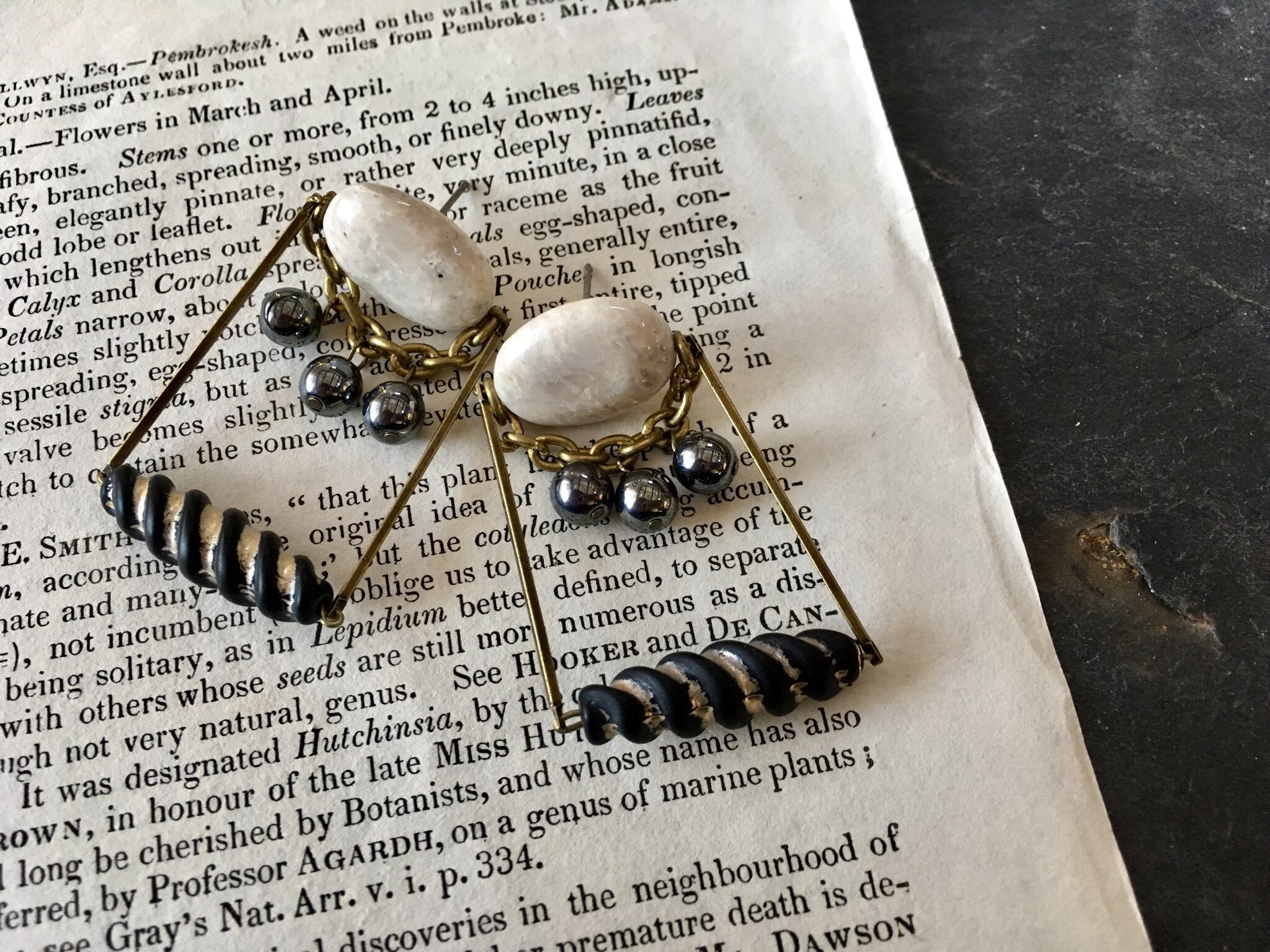 リバーストーンやヴィンテージビーズを組み合わせて、ピアスを作りました。