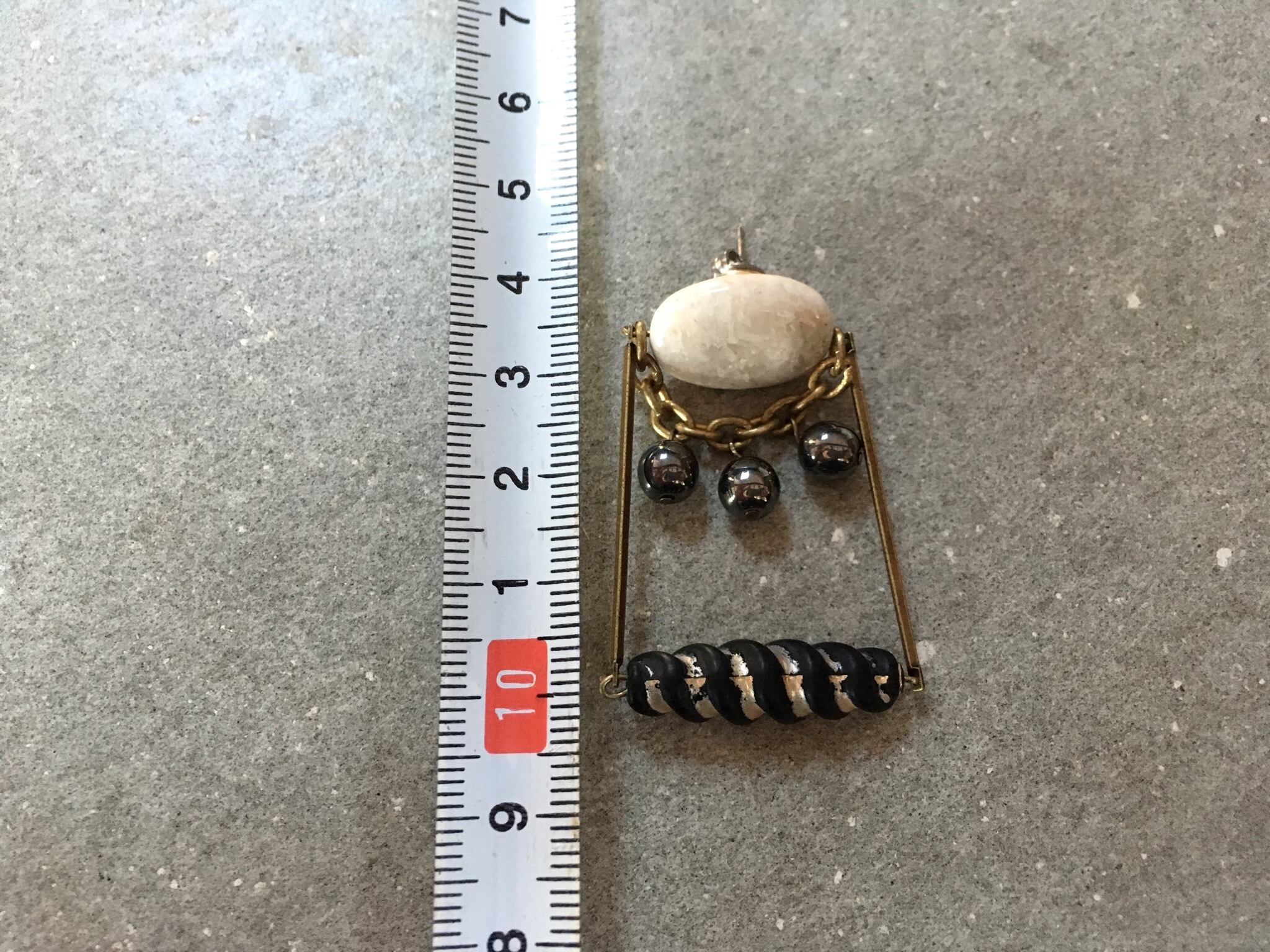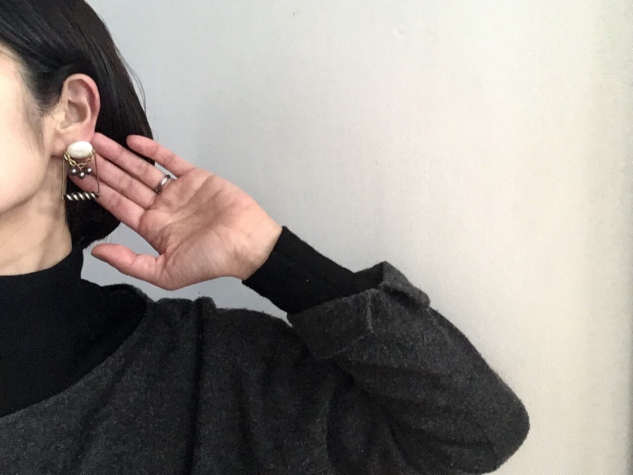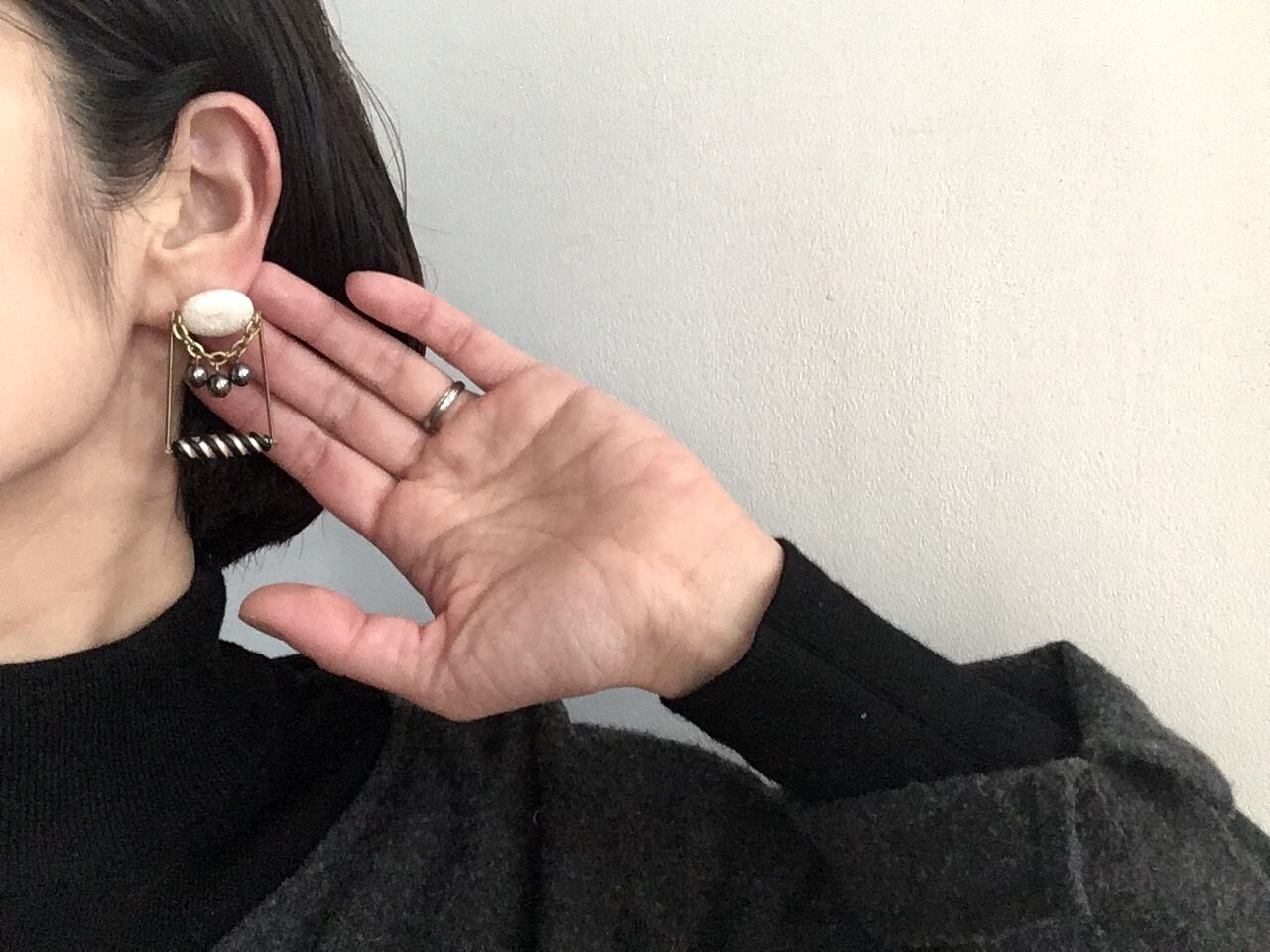 個性的なビーズや、メタリックカラーのビーズ、太めのヴィンテージチェーンなど、少しアバンギャルドな要素を持った個性的な素材を、リバースストーンの優しい雰囲気が、ちょうど良い具合にまとめてくれています。
