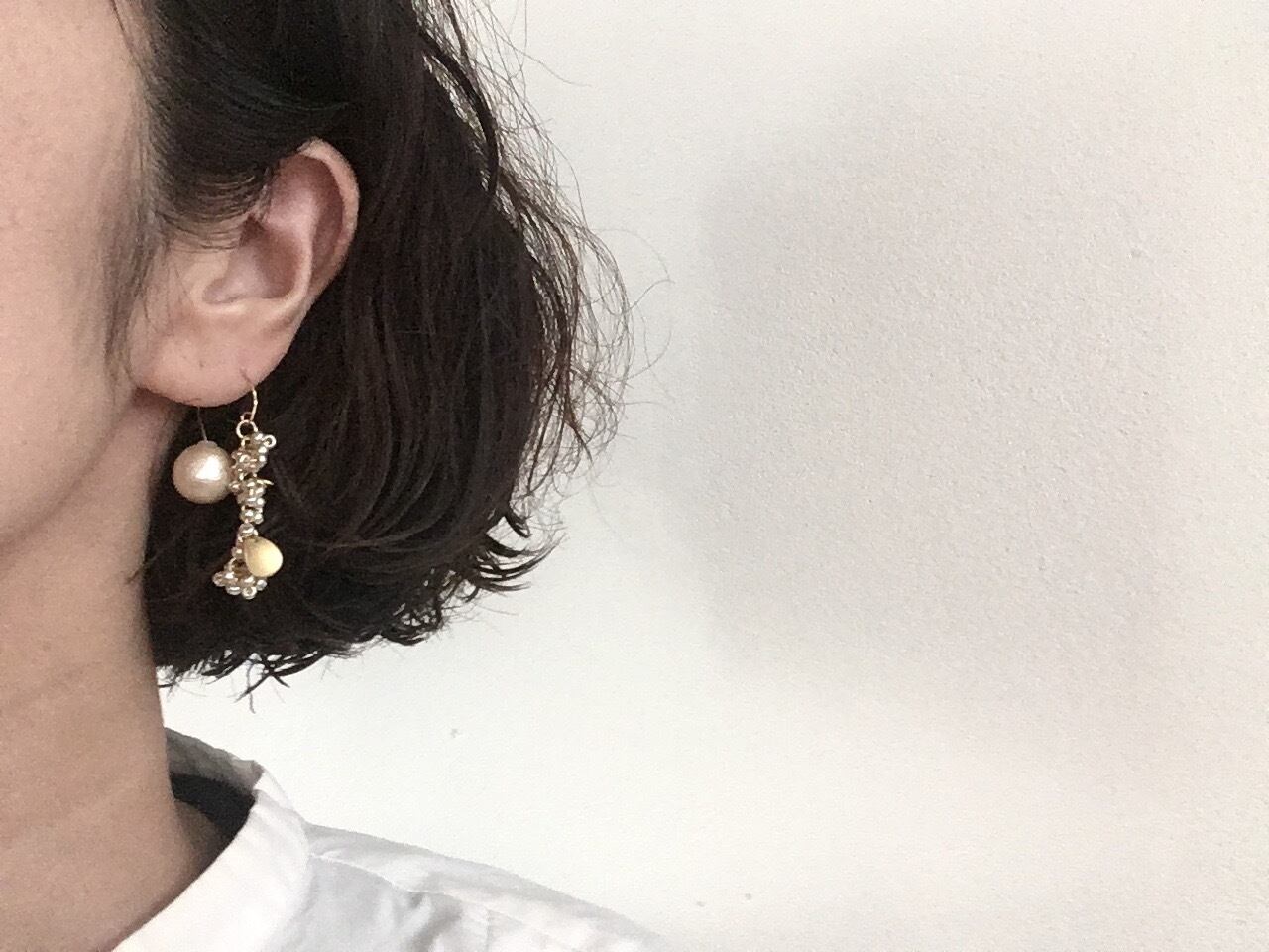 ボヘミアンビーズとコットンパールを用いて、ピアスを作りました。