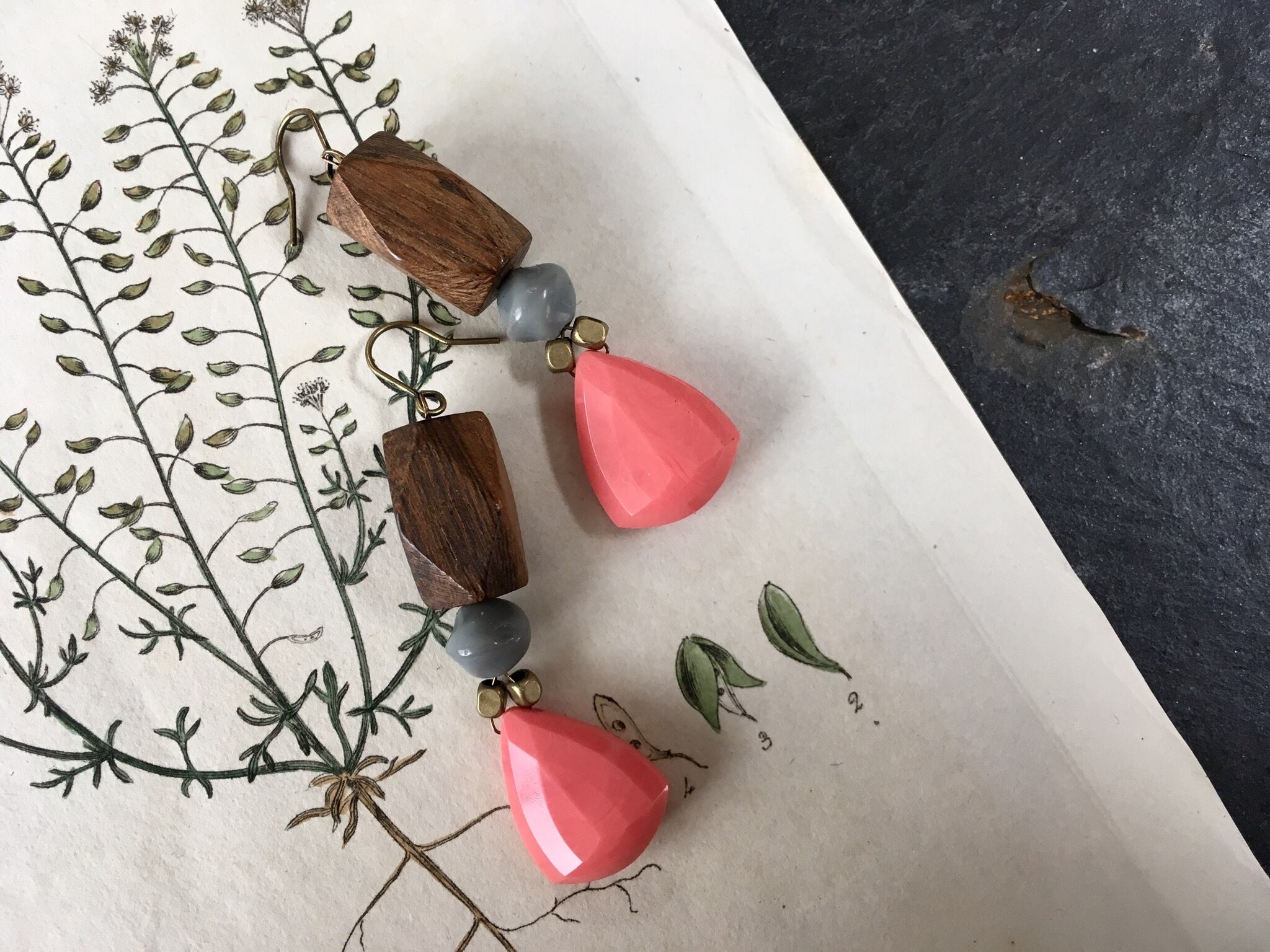 ビンテージビーズとウッドビーズを組み合わせてピアスを作りました。