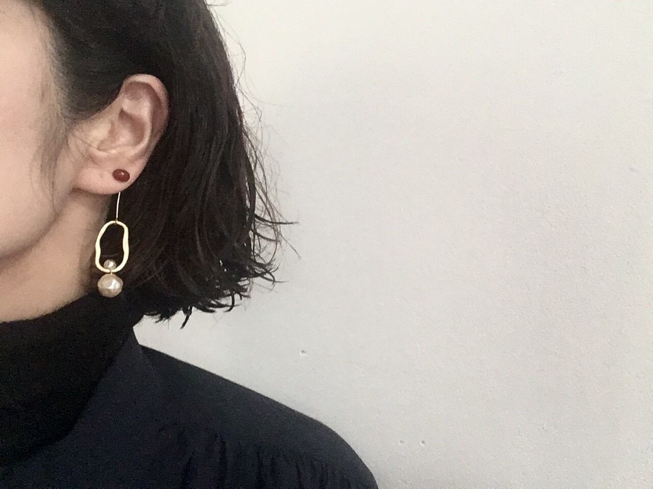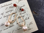 フランスヴィンテージパーツをカボションに、ヴィンテージパールビーズとメタルパーツを組み合わせてピアスに仕上げました。