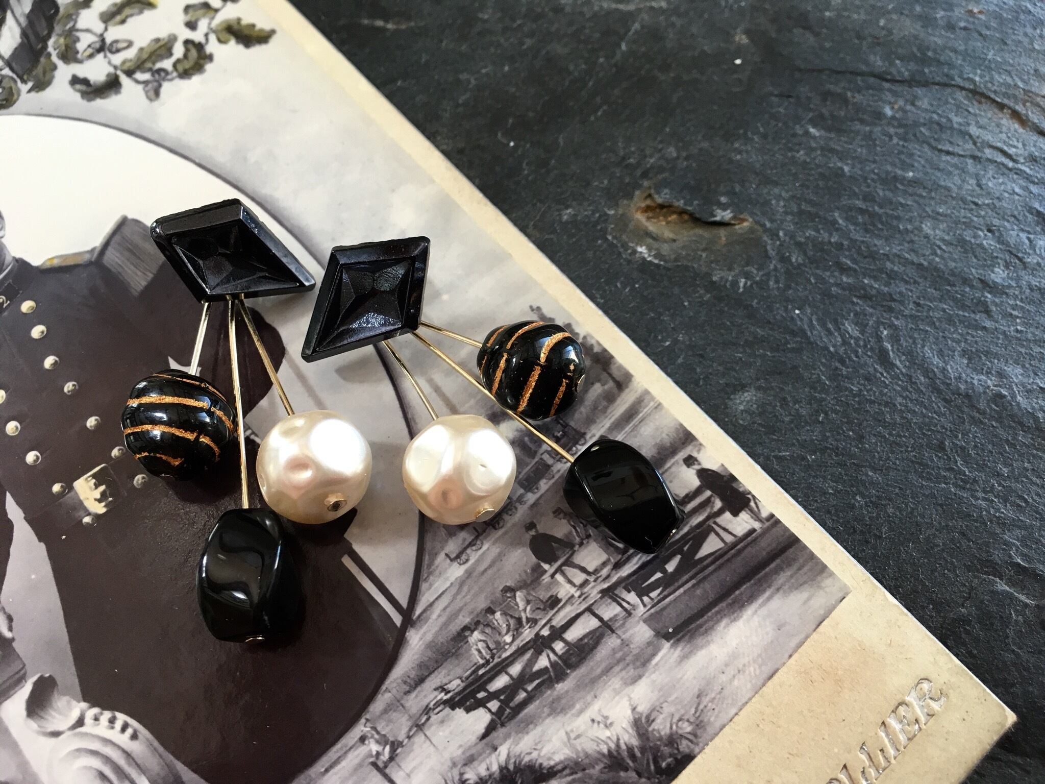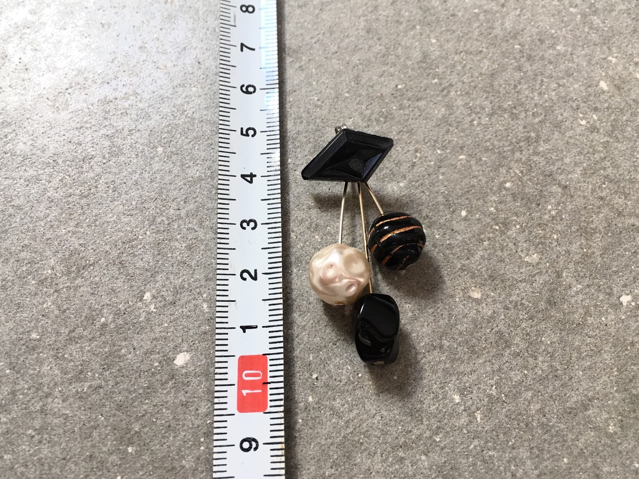 ブラックを基調とした、凛とした雰囲気が漂う中に、ヴィンテージパールビーズが優しさを添えている、大人っぽい一品です。