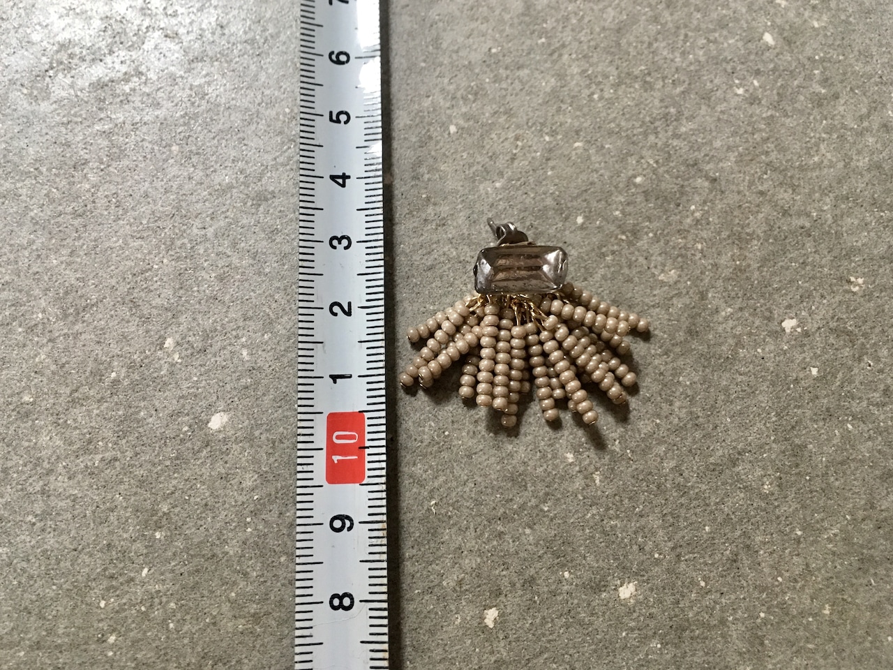 ヴィンテージガラスパーツをカボションに、たくさんのシードビーズを添えてピアスを作りました。