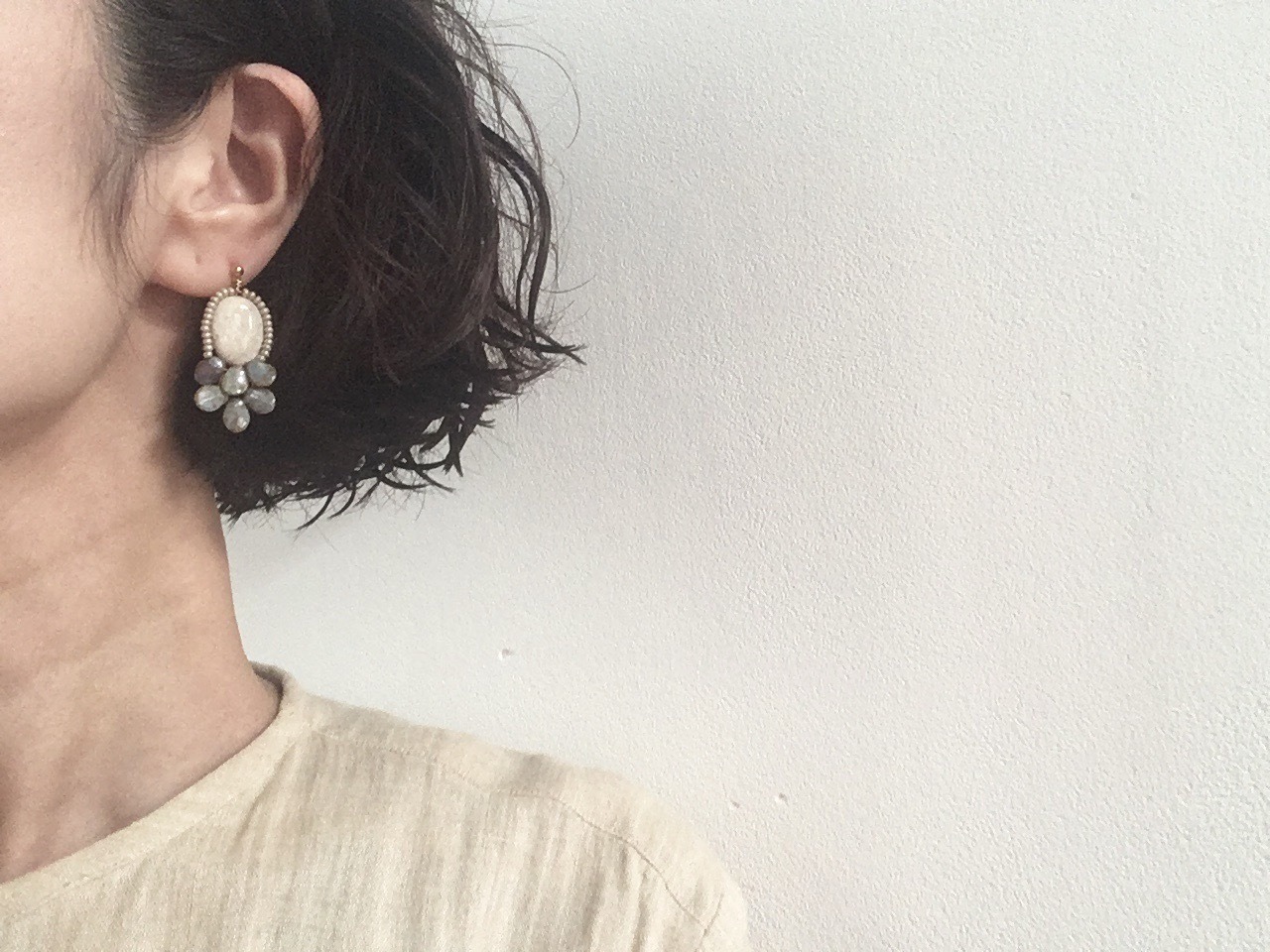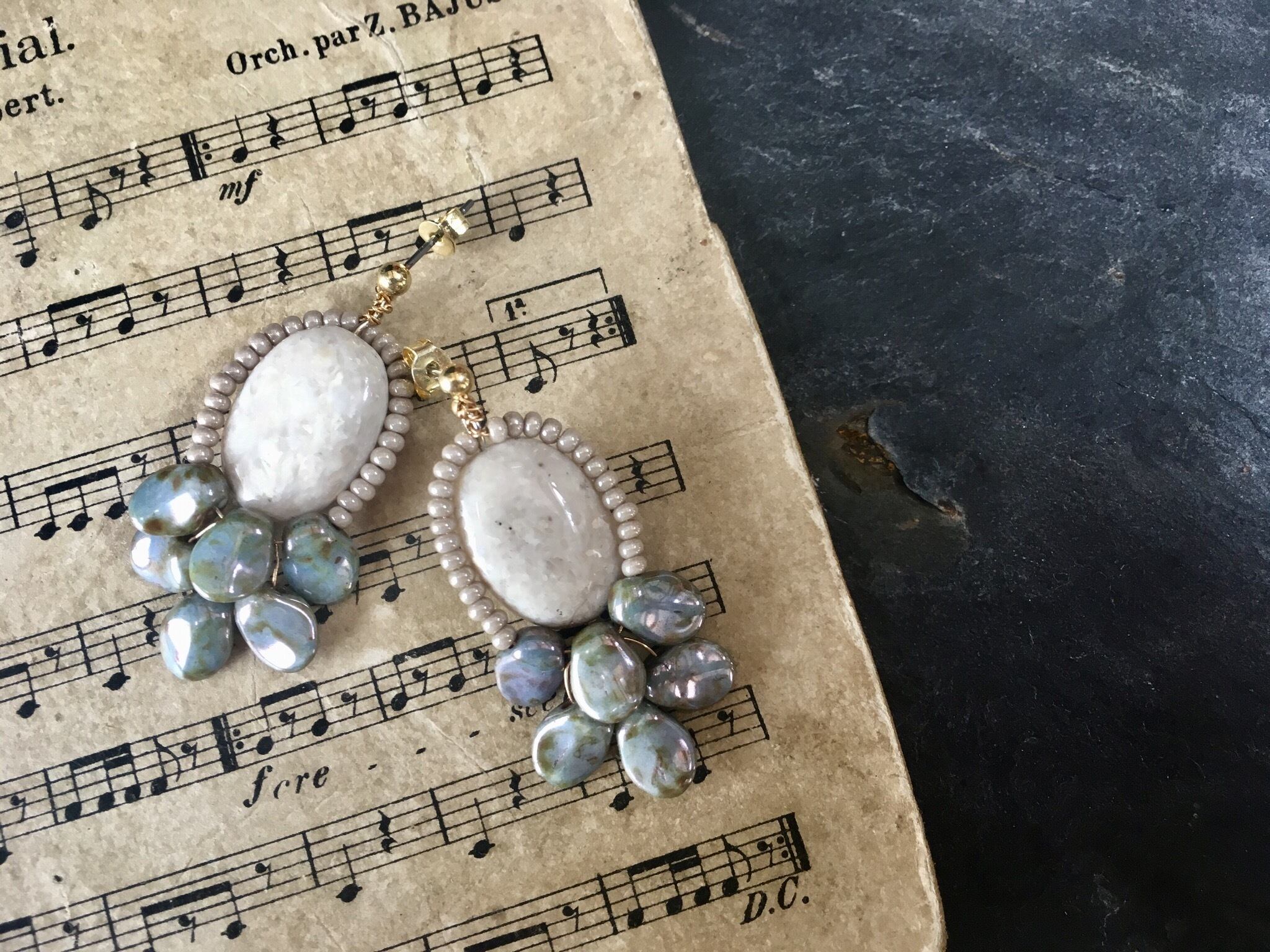天然石にチェコガラスとシードビーズを添えて、ピアスを作りました。