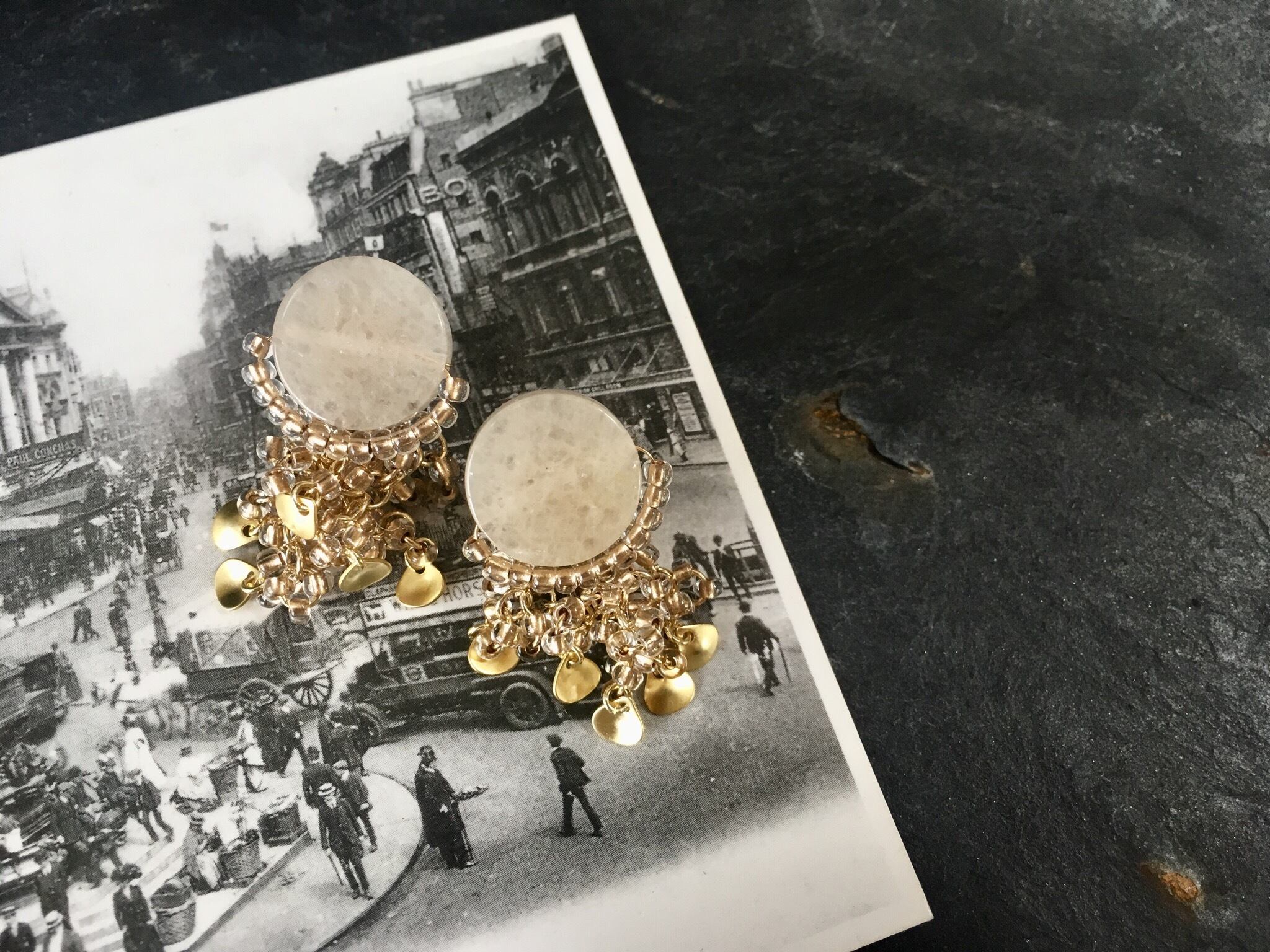天然石にボヘミアンビーズを添えて、ピアスに仕上げました。