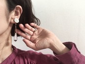 チェコの糸ボタンをカボションに、ヴィンテージのシャンデリアパーツを組み合わせて、アシンメトリーなピアスを作りました。
