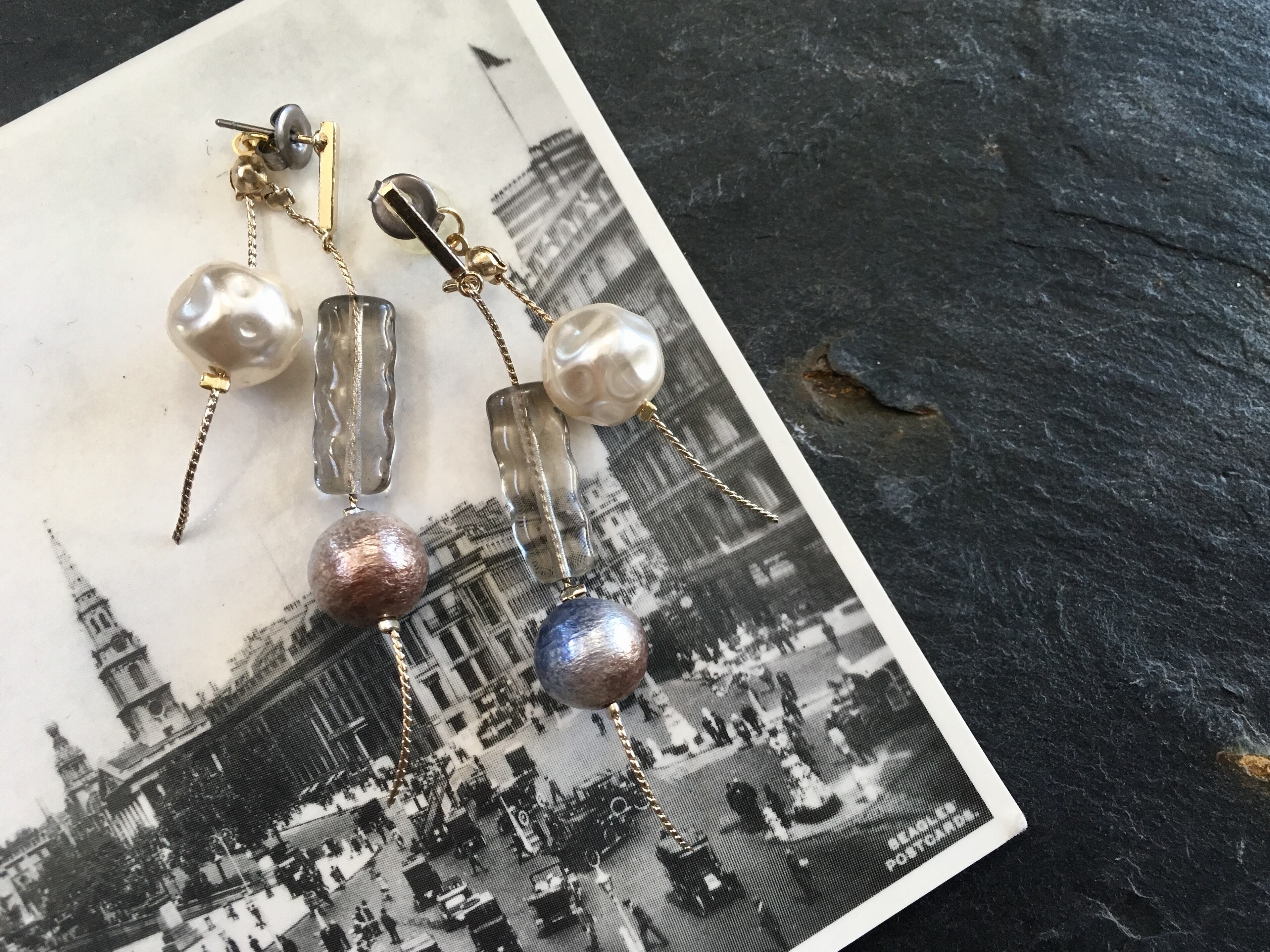 ヴィンテージビーズとコットンパールを組み合わせて、ピアスに仕上げました。