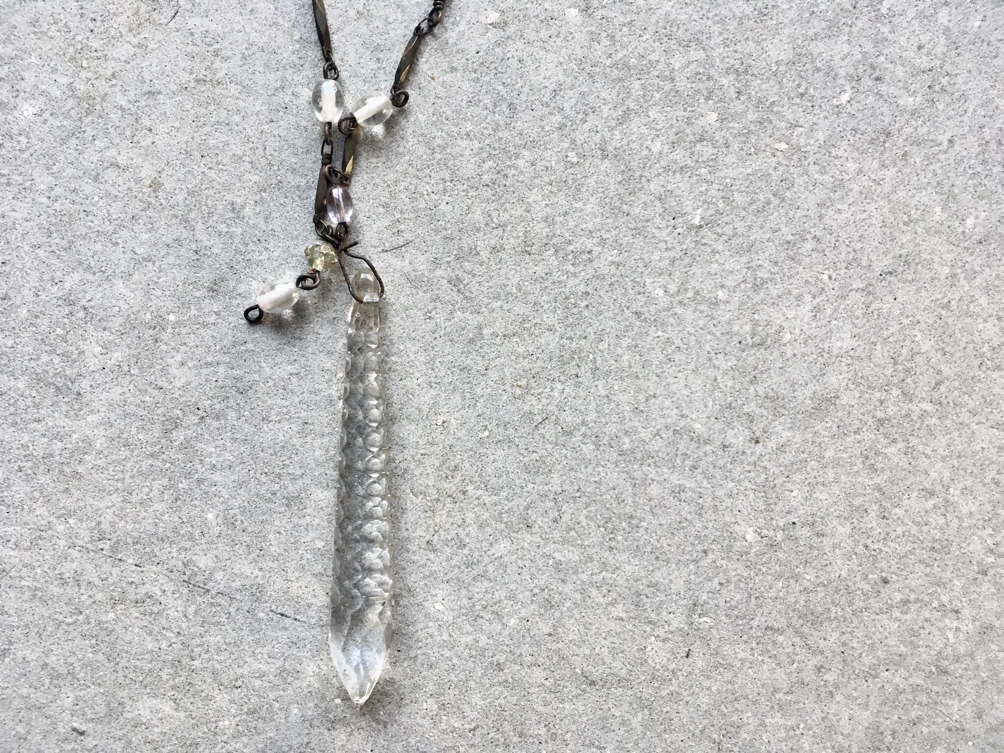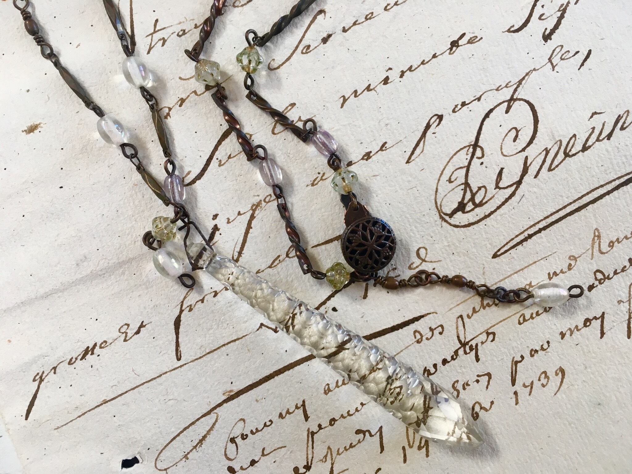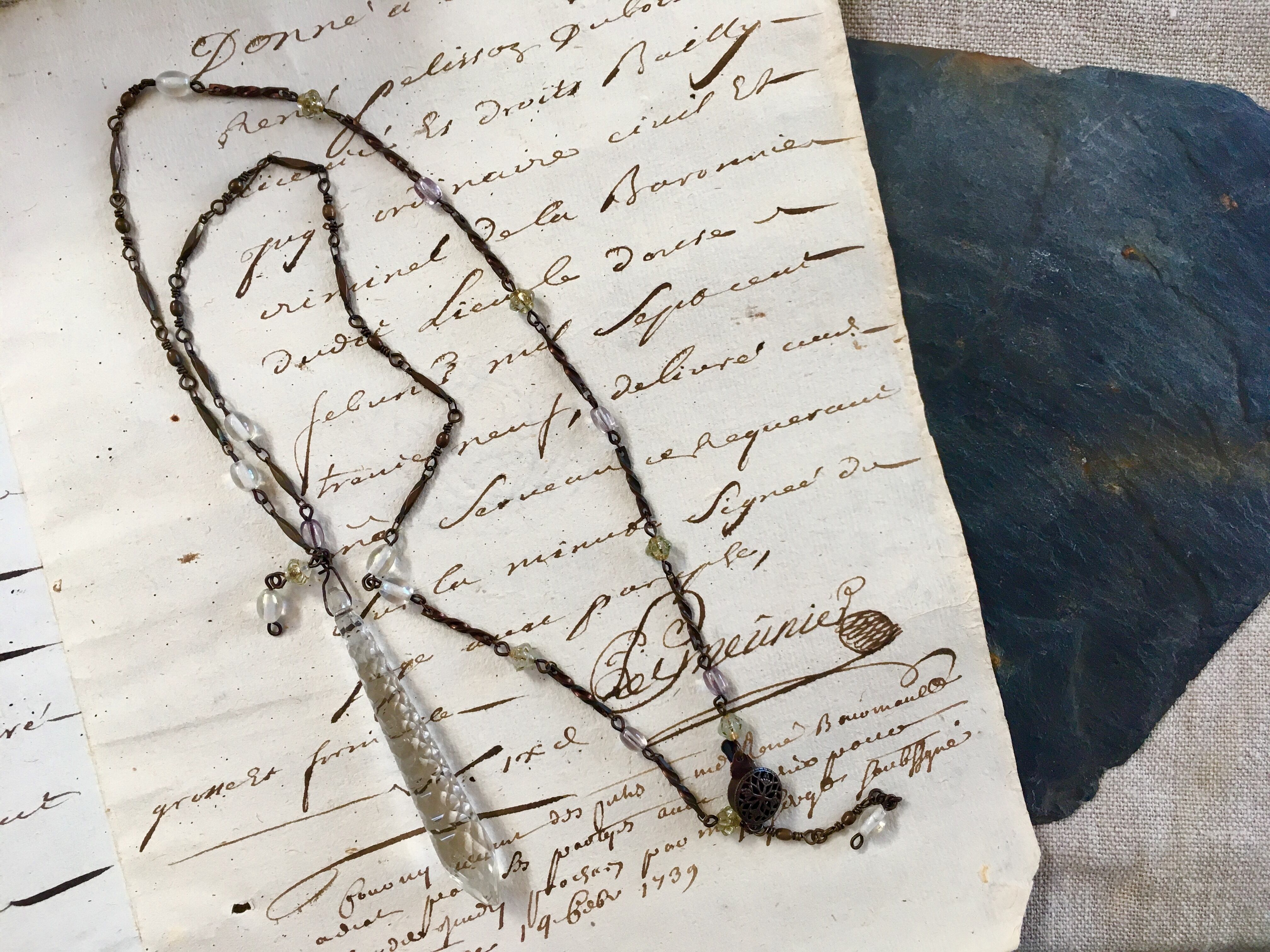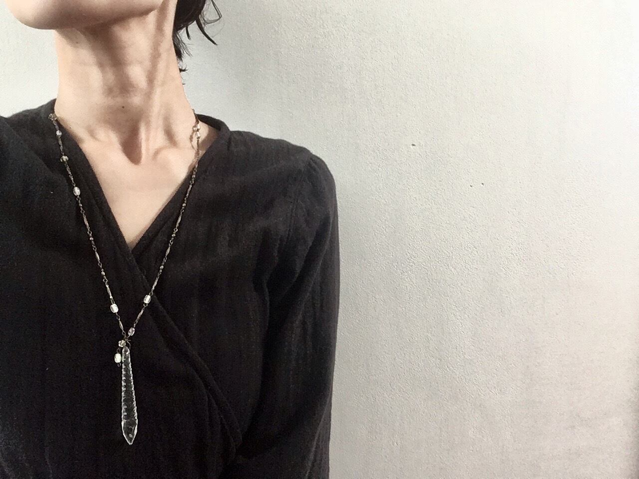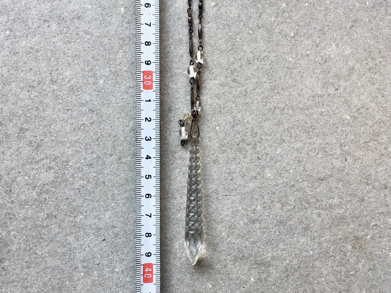 アンティークのシャンデリアパーツとヴィンテージビーズ、ヴィンテージチェーンを使って、40㎝程のネックレスに仕上げました。