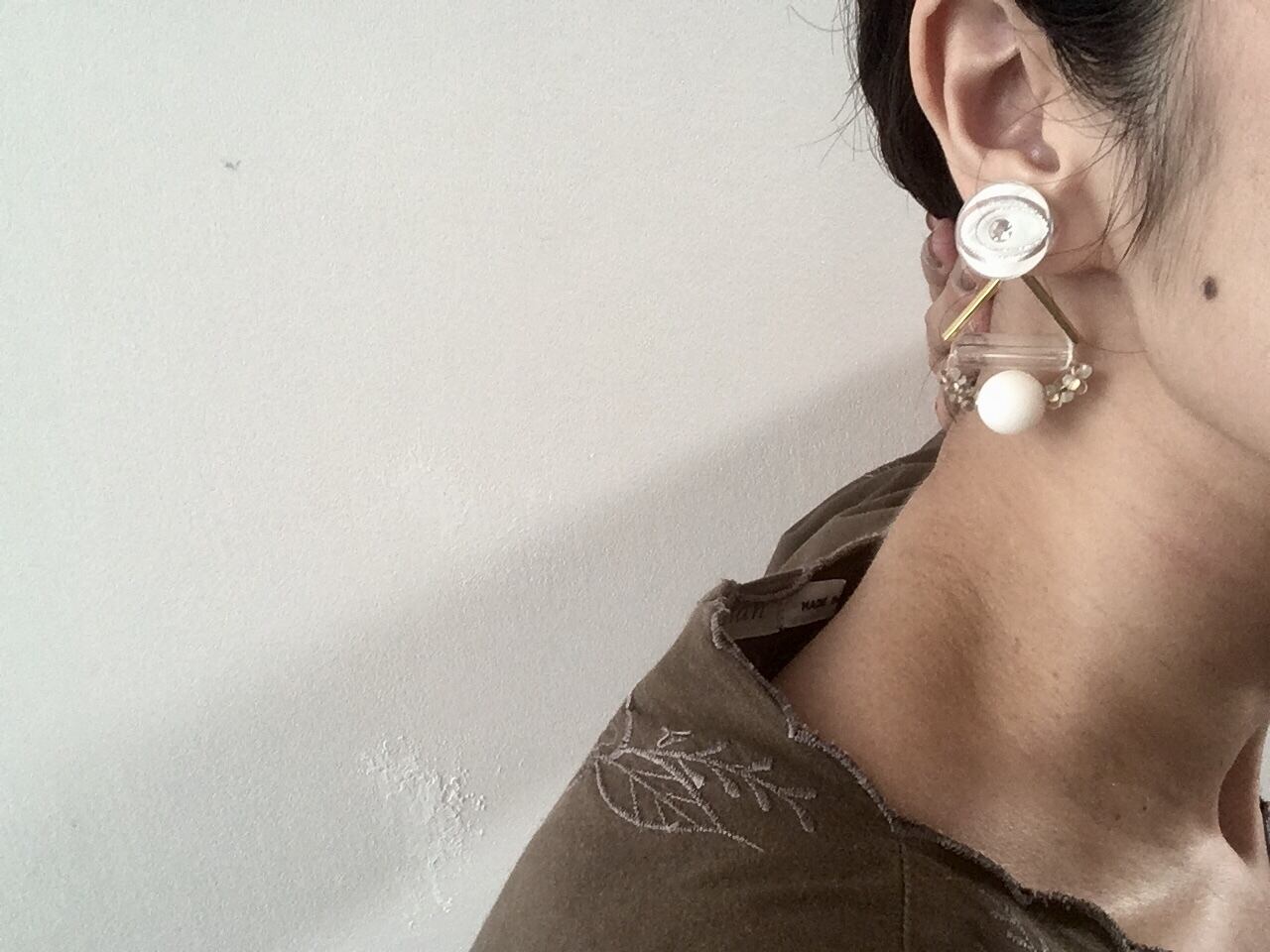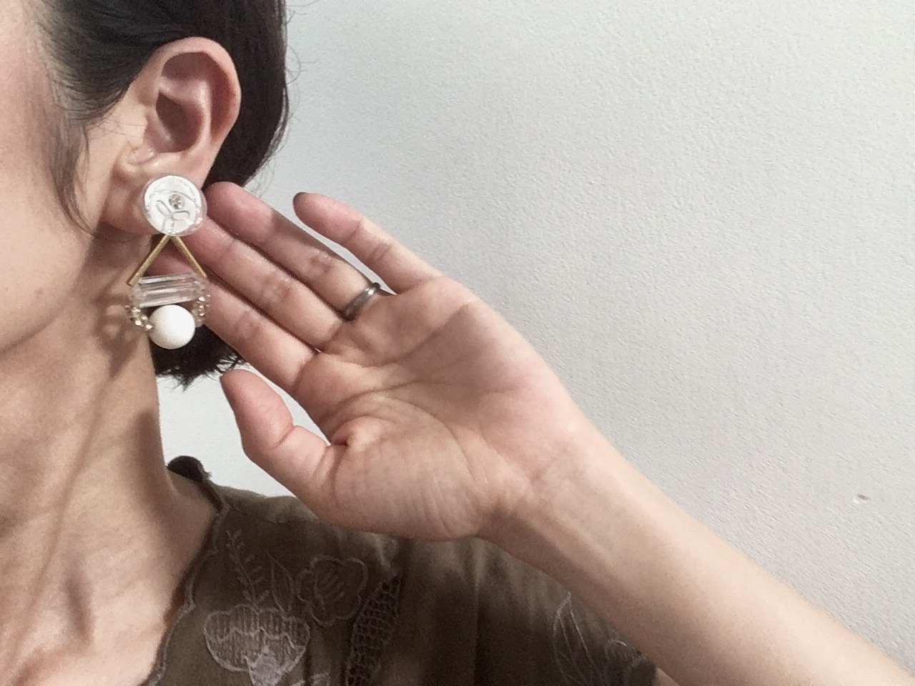 ヴィンテージボタンにヴィンテージビーズやガラスビーズを組み合わせて、ピアスに仕上げました。