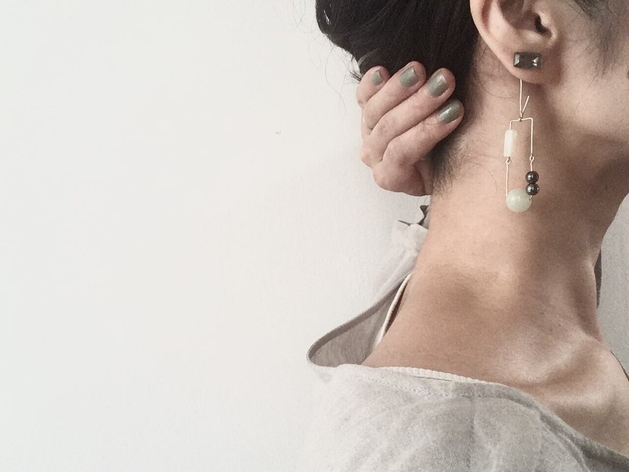 ヴィンテージパーツに天然石を組み合わせて、ピアスに仕上げました。