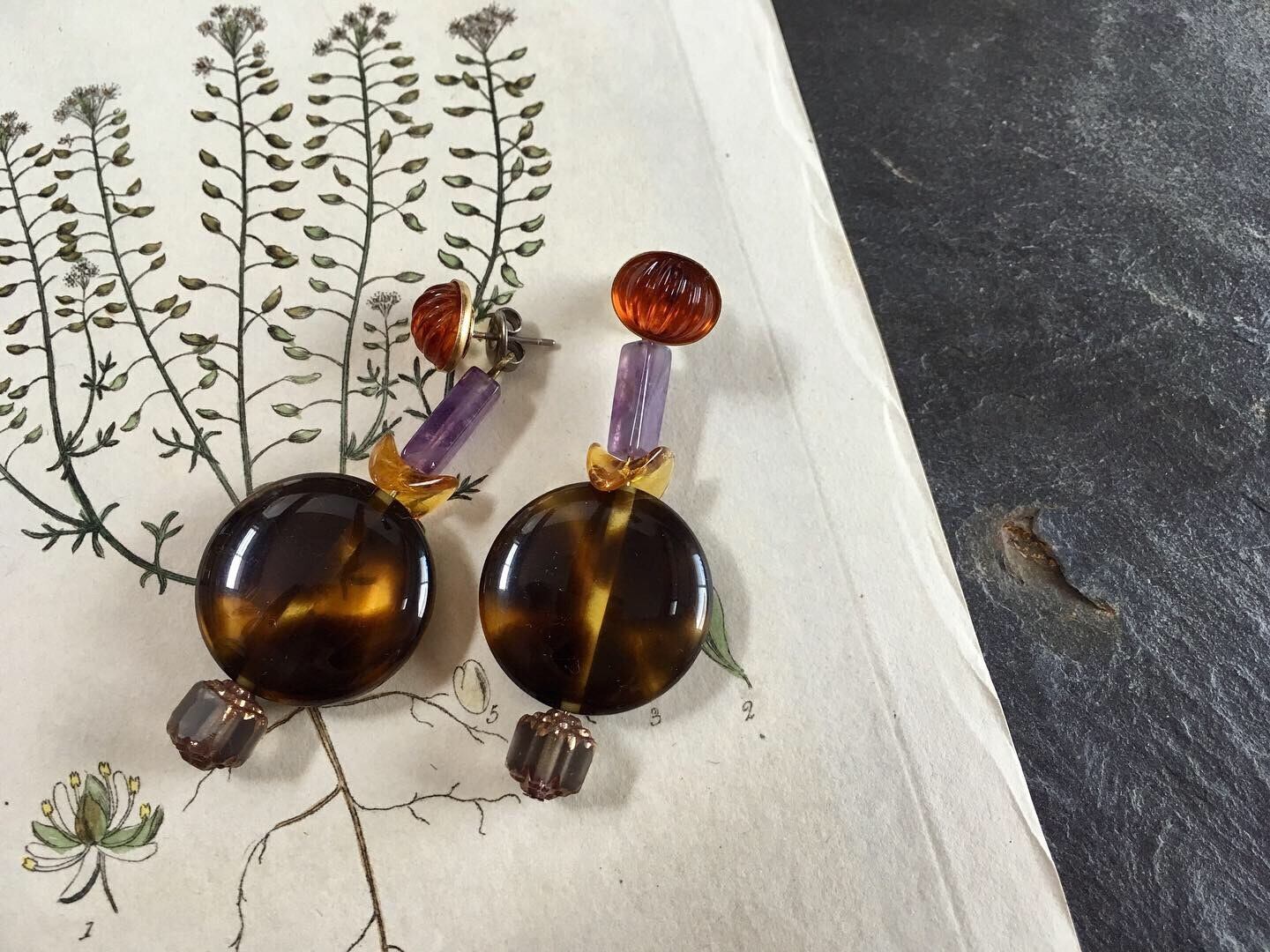 様々な国のヴィンテージビーズと天然石を組み合わせ、ピアスに仕上げました。