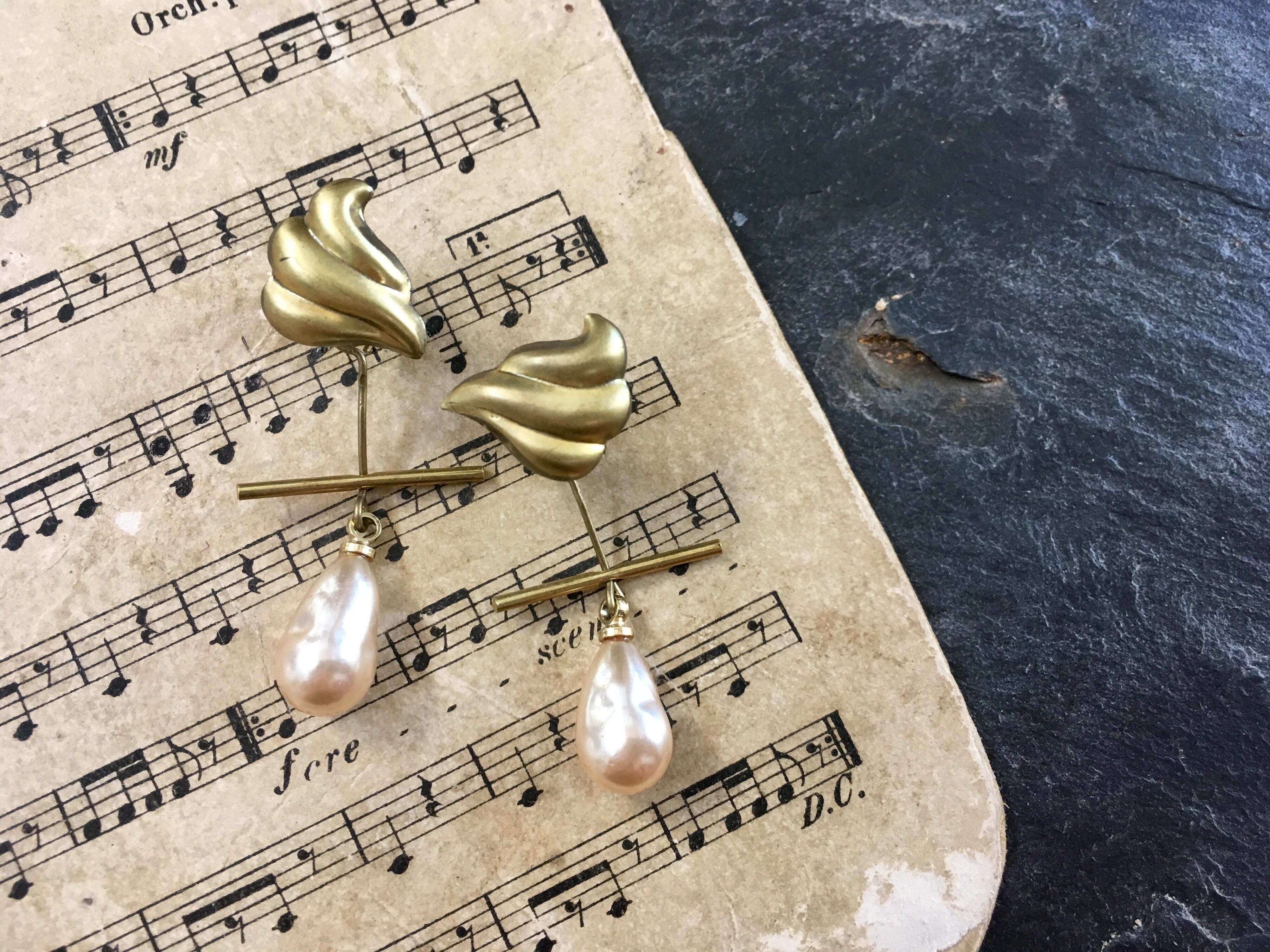 ヴィンテージパーツとヴィンテージパールビーズを使って、ピアスを作りました。