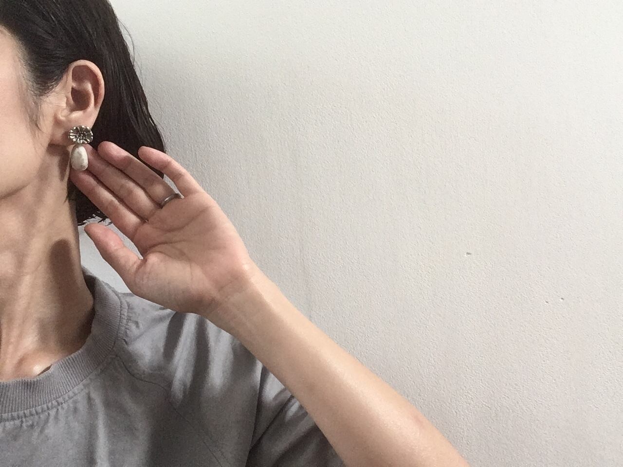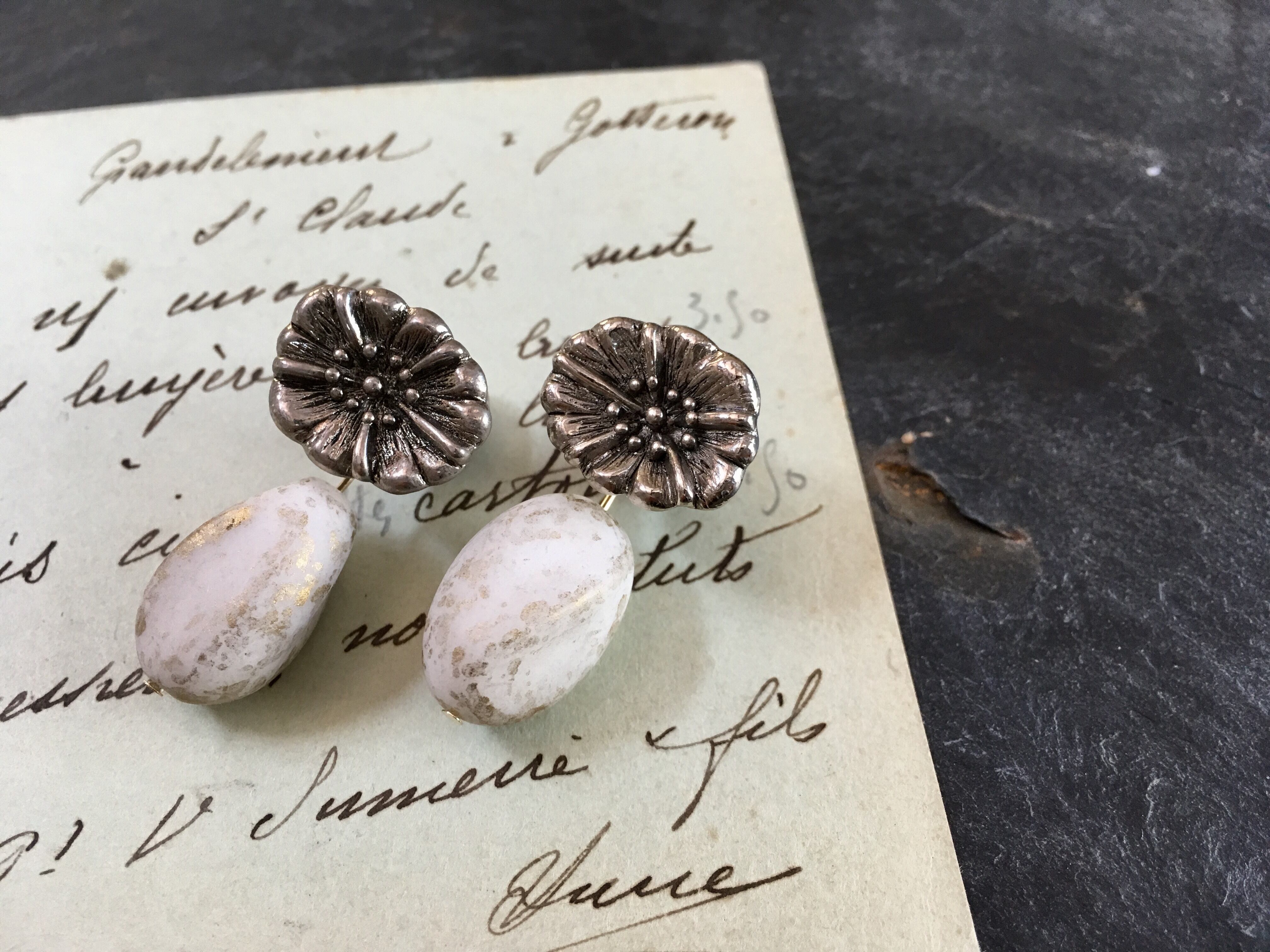 ヴィンテージボタンにヴィンテージビーズを添えて、シンプルなピアスに仕上げました。