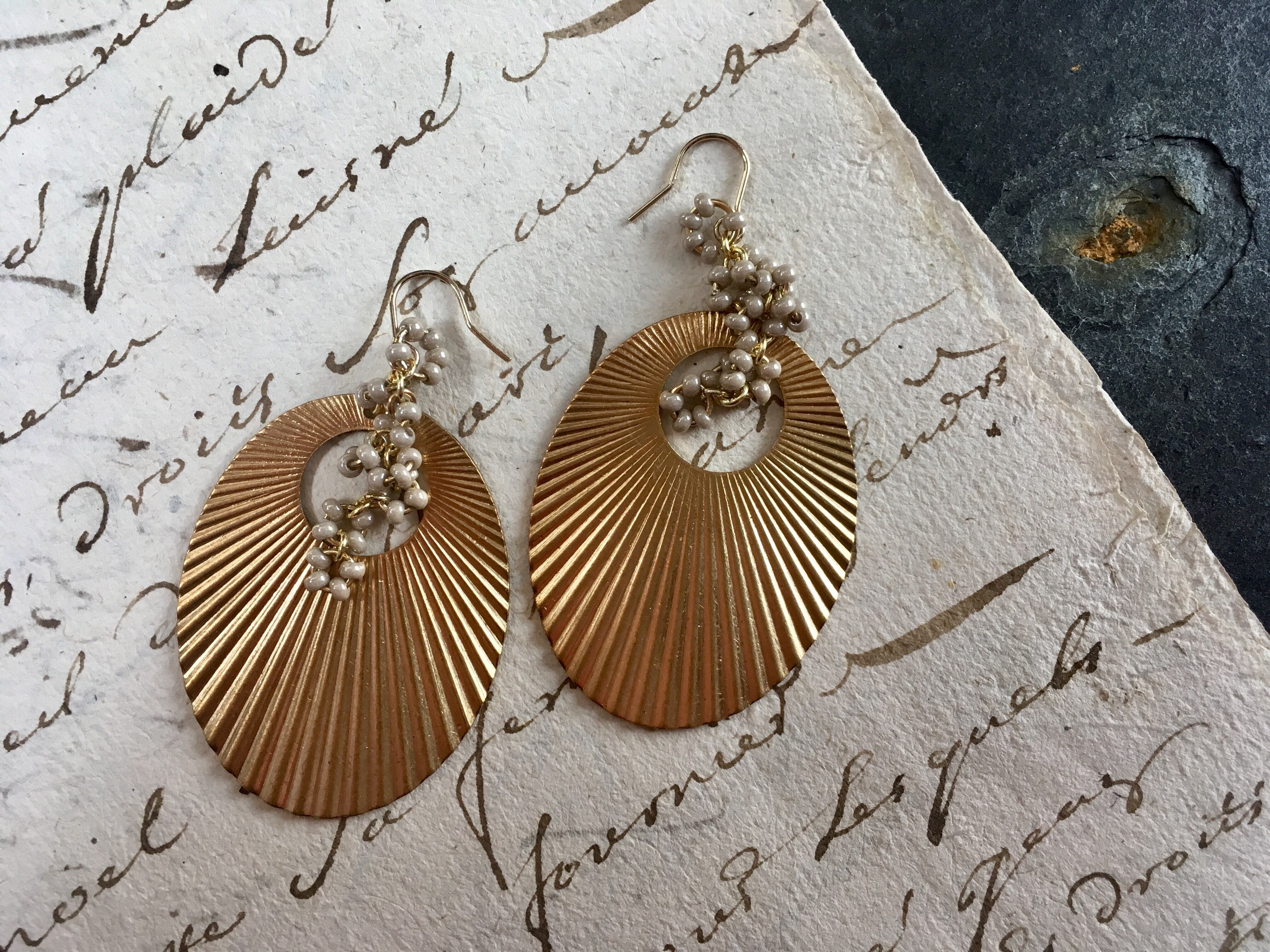 ヴィンテージ真鍮パーツにシードビーズを添えて、ピアスに仕上げました。