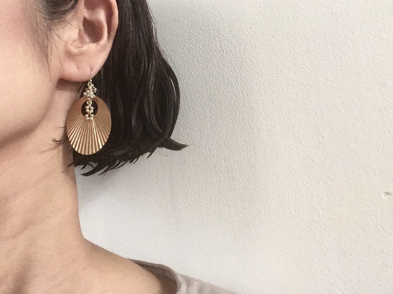 存在感のあるパーツに、控え目なシードビーズが寄り添って、上品にまとまっています。