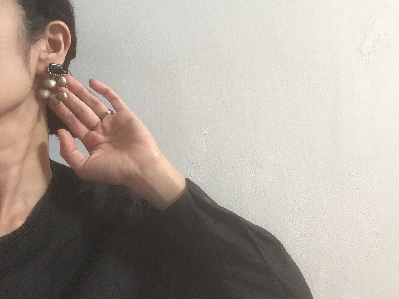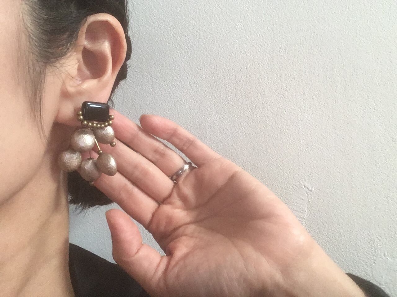 オニキスとヴィンテージパールビーズを使って、ピアスを作りました。