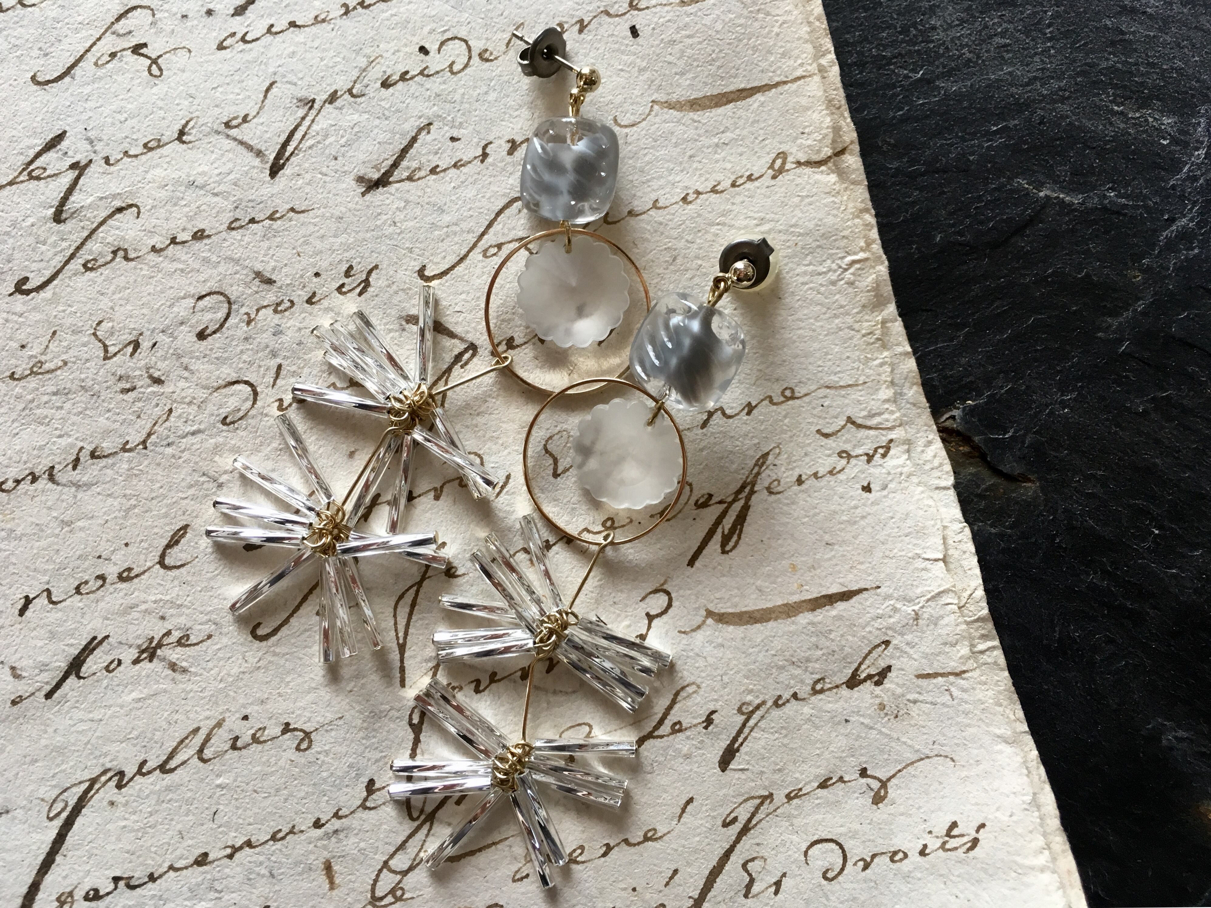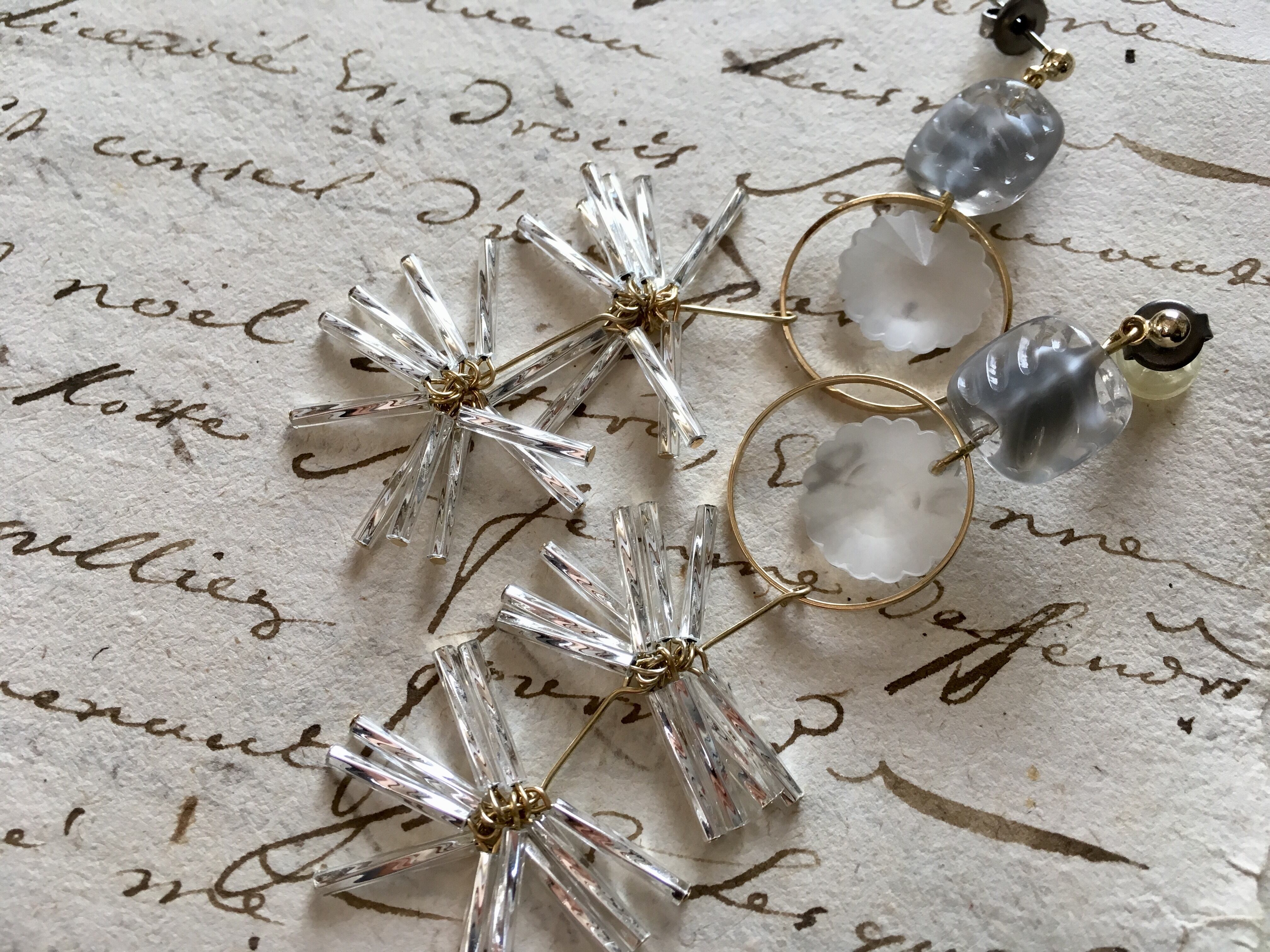 ヴィンテージビーズにメタルパーツとガラスチューブを組み合わせて、ピアスに仕上げました。