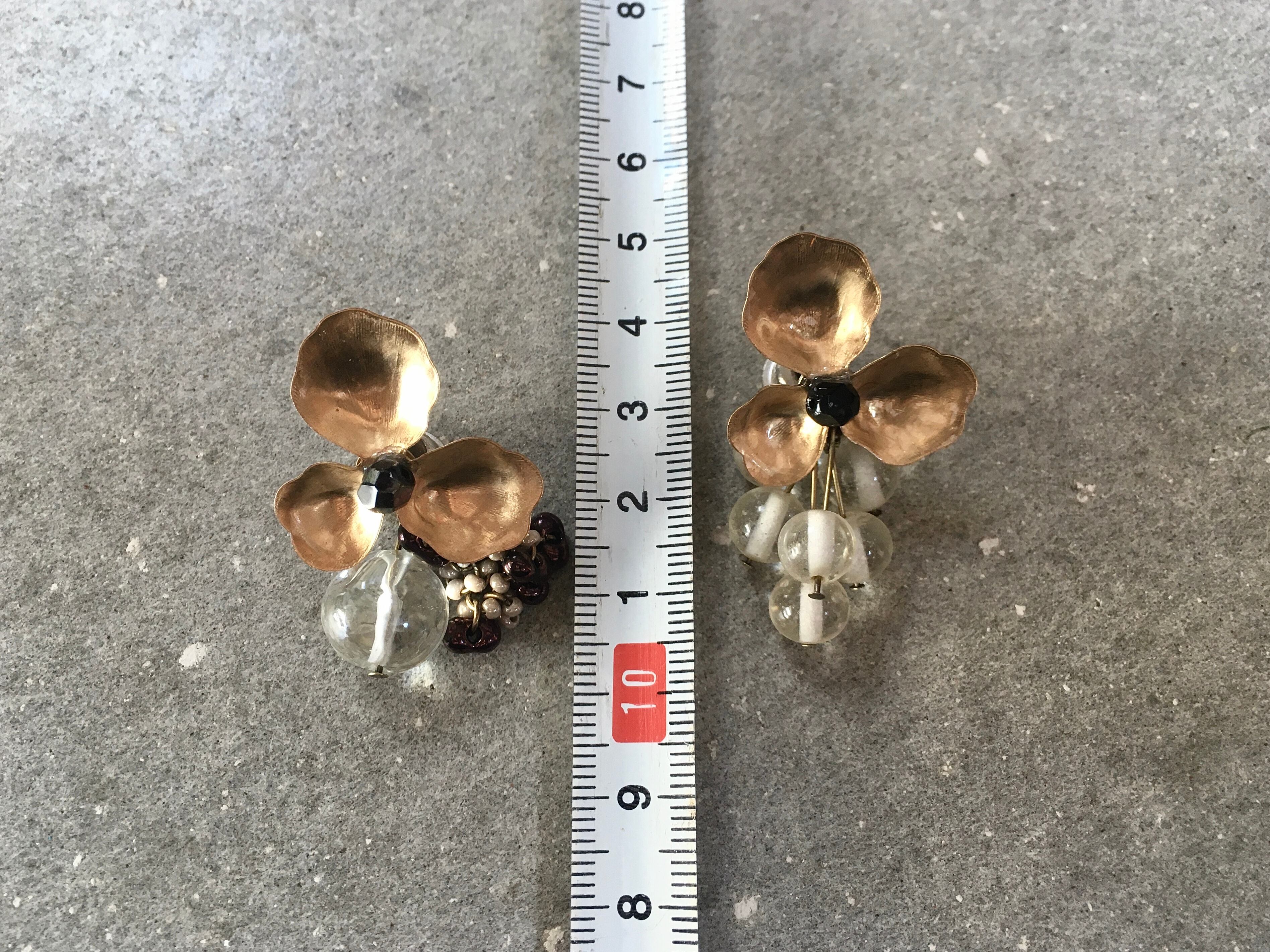 真鍮パーツにヴィンテージガラスビーズを添えて、アシンメトリーなピアスに仕上げました。