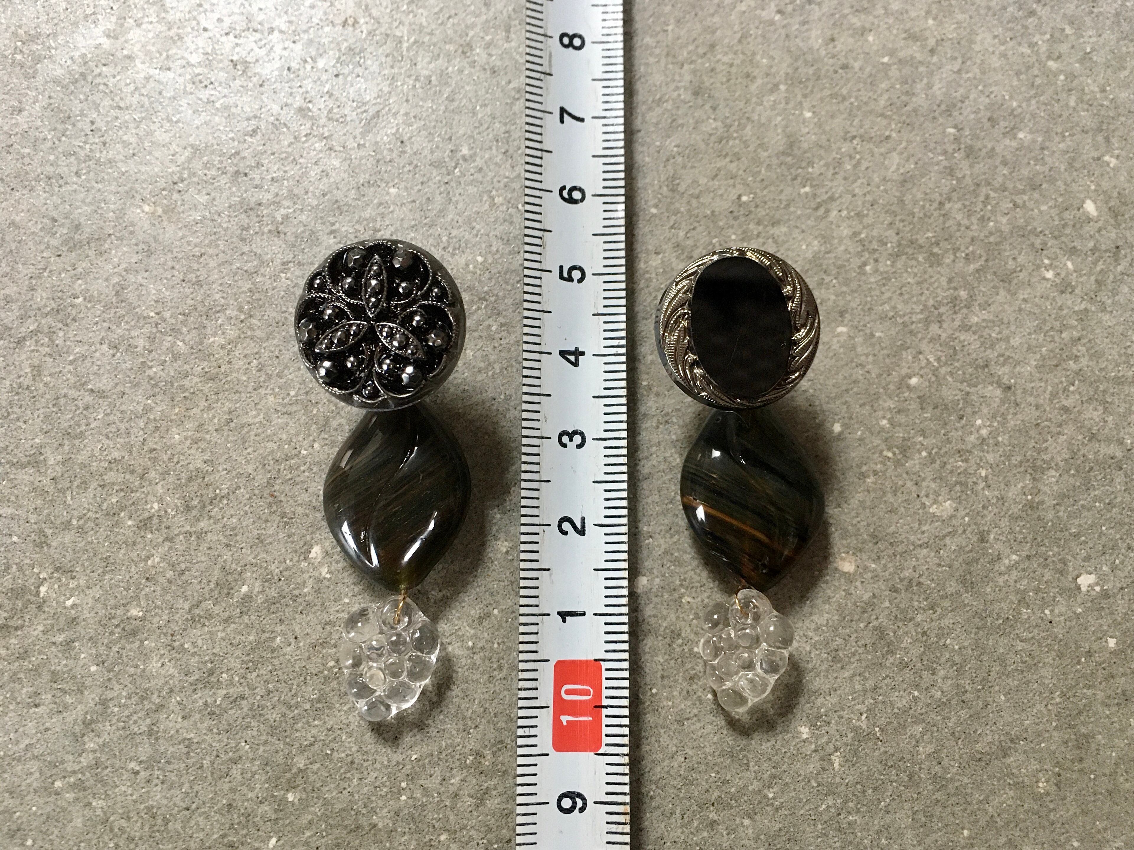 ヴィンテージガラスボタンにヴィンテージ ビーズを添えて、ピアスに仕上げました。