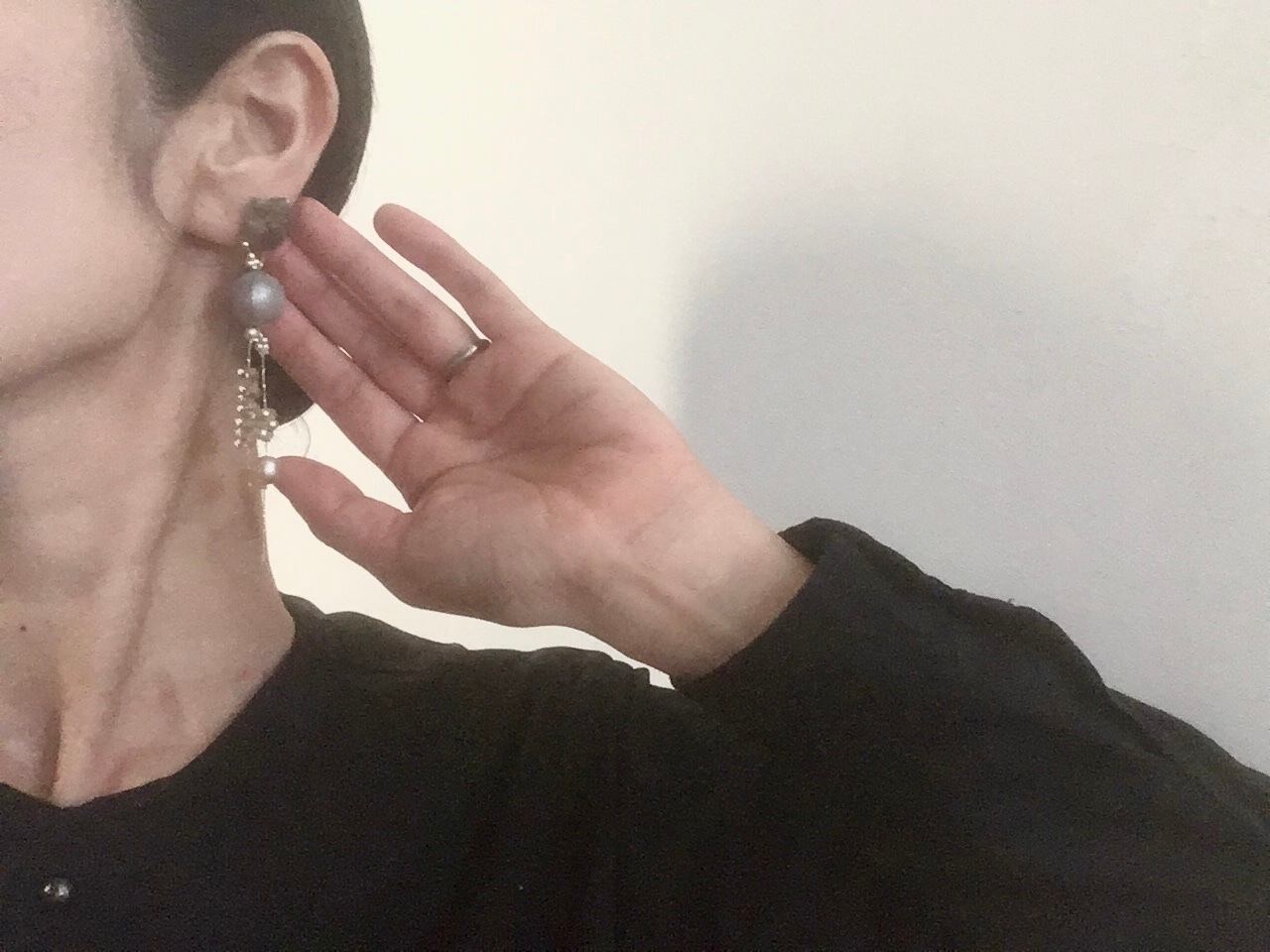 天然石ビーズをカボションに、ヴィンテージビーズとガラスビーズを添えてピアスに仕上げました。