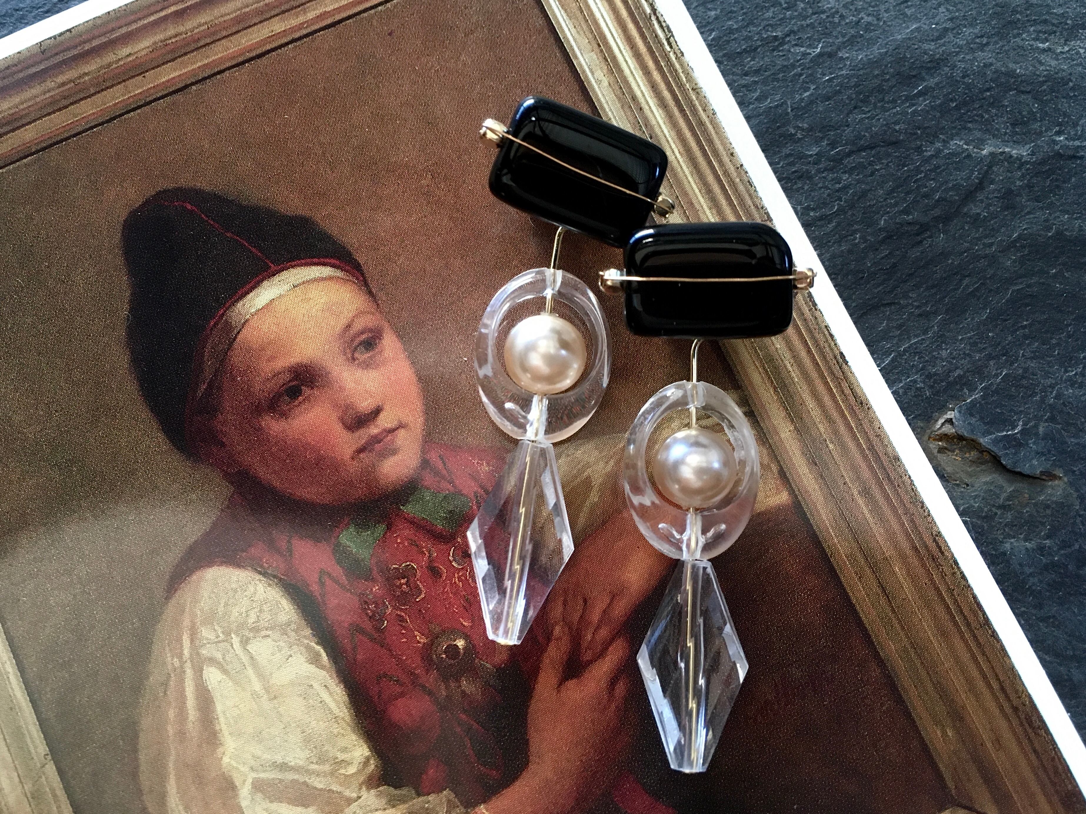 ヴィンテージガラスビーズをカボションに、ヴィンテージビーズを添えてピアスに仕上げました。
