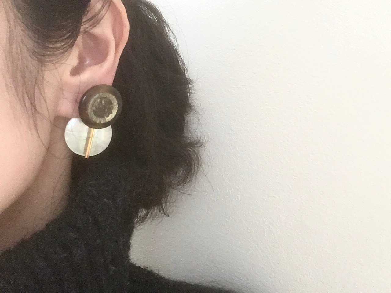 ヴィンテージボタンとシェルを組み合わせて、ピアスに仕上げました。