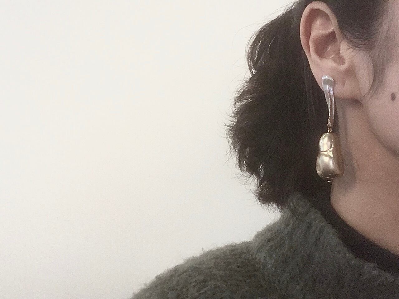 淡水パールとヴィンテージビーズを用いて、アシンメトリーなピアスに仕上げました。