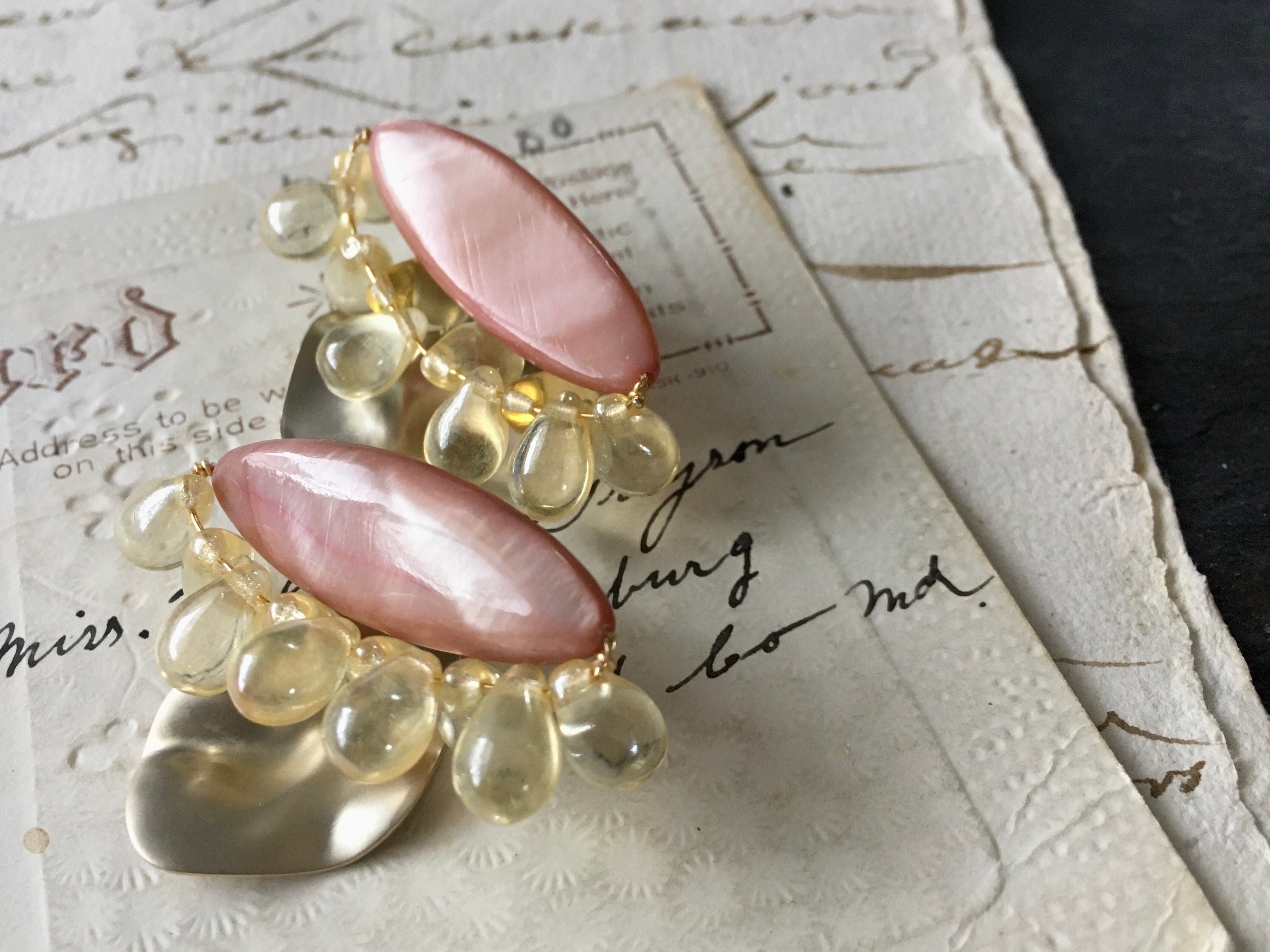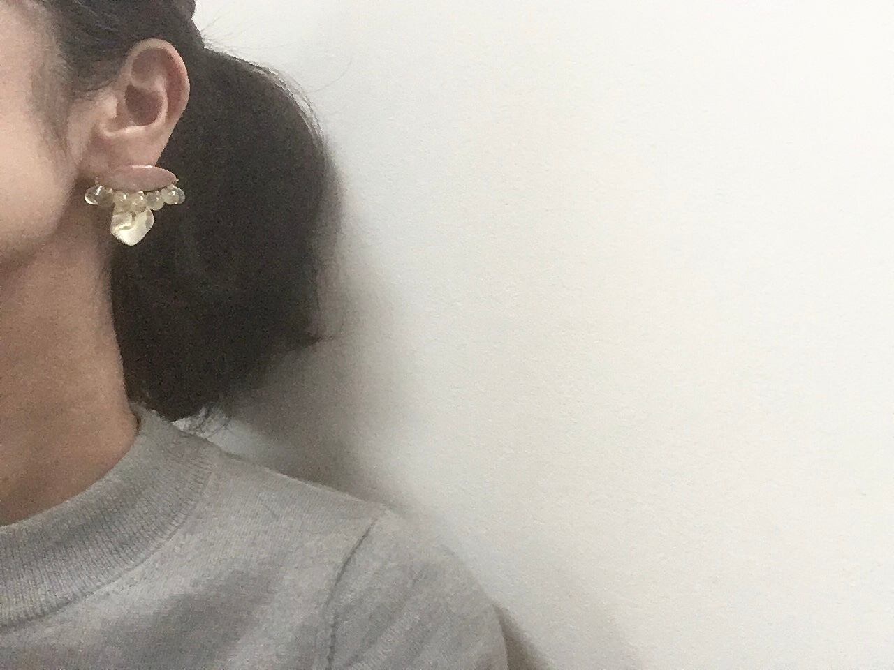 シェルビーズにチェコガラスビーズを添えて、ピアスを作りました。