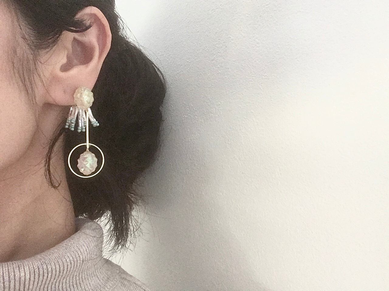 個性豊かな虹色のビーズやガラスキューブがキラキラと光り、これからの季節の主役になれる一品です。